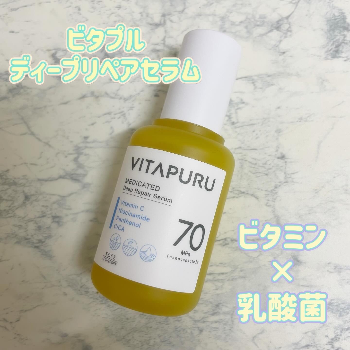 ビタプル ディープリペアセラム【医薬部外品】𓈒𓏸𓐍𓂃𓈒𓏸𓂃◌𓈒𓐍𓈒𓈒𓏸𓐍𓂃𓈒𓏸𓂃◌𓈒𓐍𓈒塗るビタミン×乳酸菌ケアあらゆる肌トラブルの原因*¹にアプローチしてくれるみたい70MPaで高圧処理をしたナノカプセル配合。角層深くまでぐんぐん浸透する高...