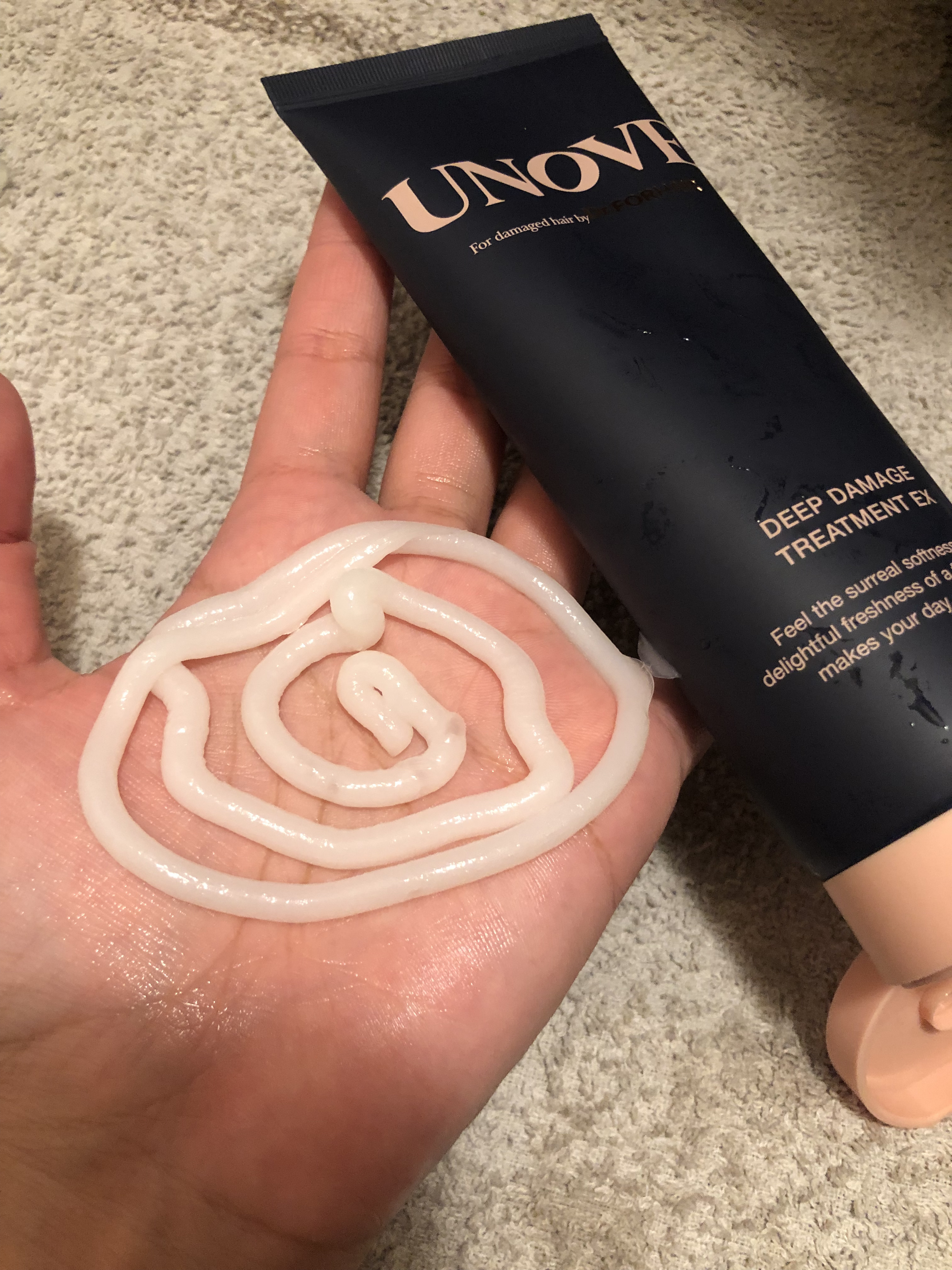 たんぱく質補給で優しくダメージケア🫧韓国の人気ブランドUNOVE(アノブ)!中でも圧倒的ベストセラーアイテムがディープダメージトリートメントEX🤍テクスチャは硬め💡フレッシュフローラルムスクの香りが少し独特で、海外の高級ホテルのロビーみたいだ...
