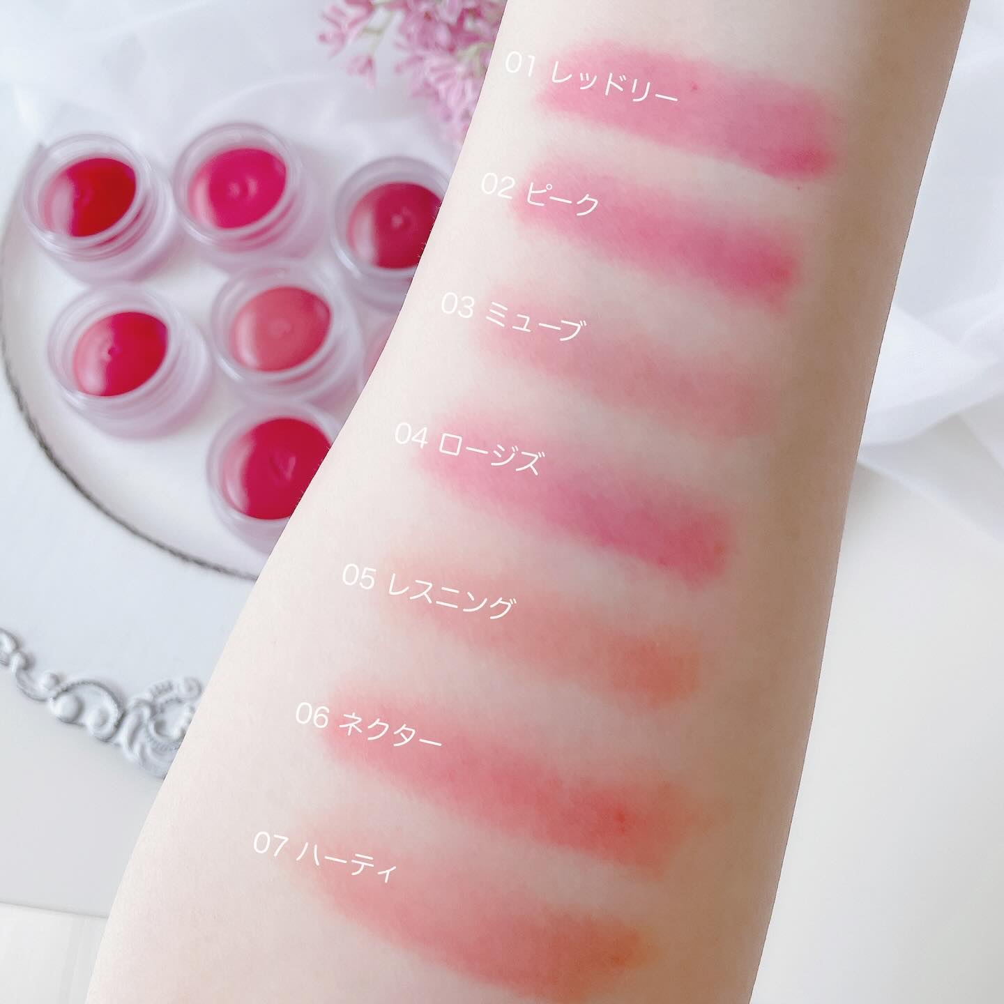 - <02 PEAK(ピーク)> ジメチコン、ジメチコンクロスポリマー、シリカ、イソノナン酸イソノニル、パラフィン、合成フルオロフロゴパイト、リンゴ酸ジイソステアリル、酸化チタン、リンゴ種子油、トリイソステアリン酸ポリグリセリル-2、ツバキ種子油、セチルPEG/PPG-10/1ジメチコン、イソステアリン酸ソルビタン、(セバシン酸/イソパルミチン酸)ジグリセリル、(ビニルジメチコン/メチコンシルセスキオキサン)クロスポリマー、ポリヒドロキシステアリン酸、マイクロクリスタリンワックス、ジステアルジモニウムヘクトライト、レシチン、ジイソステアリン酸ポリグリセリル-2、パルミチン酸エチルヘキシル、ミリスチン酸イソプロピル、イソステアリン酸、ポリリシノレイン酸ポリグリセリル-3、クエン酸トリエチル、(ラズベリー種子油/コハク酸トコフェロール)アミノプロパンジオールエステルズ、トコフェロール、ブドウ種子油、BG、水、グリセリン、シロバナワタ種子エキス、香料、酸化鉄、赤202、黄4、赤227、赤201 <03 MUVE(ミューブ)> ジメチコン、ジメチコンクロスポリマー、シリカ、パラフィン、合成フルオロフロゴパイト、リンゴ酸ジイソステアリル、酸化チタン、イソノナン酸イソノニル、リンゴ種子油、トリイソステアリン酸ポリグリセリル-2、ツバキ種子油、セチルPEG/PPG-10/1ジメチコン、イソステアリン酸ソルビタン、(セバシン酸/イソパルミチン酸)ジグリセリル、(ビニルジメチコン/メチコンシルセスキオキサン)クロスポリマー、ポリヒドロキシステアリン酸、マイクロクリスタリンワックス、ジステアルジモニウムヘクトライト、レシチン、ジイソステアリン酸ポリグリセリル-2、パルミチン酸エチルヘキシル、ミリスチン酸イソプロピル、イソステアリン酸、ポリリシノレイン酸ポリグリセリル-3、クエン酸トリエチル、(ラズベリー種子油/コハク酸トコフェロール)アミノプロパンジオールエステルズ、トコフェロール、ブドウ種子油、BG、水、グリセリン、シロバナワタ種子エキス、香料、酸化鉄、黄4、赤202、青1、赤201 <05 LESSENING(レスニング)> ジメチコン、ジメチコンクロスポリマー、シリカ、リンゴ酸ジイソステアリル、酸化チタン、パラフィン、合成フルオロフロゴパイト、リンゴ種子油、トリイソステアリン酸ポリグリセリル-2、イソノナン酸イソノニル、ツバキ種子油、セチルPEG/PPG-10/1ジメチコン、イソステアリン酸ソルビタン、(セバシン酸/イソパルミチン酸)ジグリセリル、(ビニルジメチコン/メチコンシルセスキオキサン)クロスポリマー、ポリヒドロキシステアリン酸、マイクロクリスタリンワックス、ジステアルジモニウムヘクトライト、レシチン、パルミチン酸エチルヘキシル、ミリスチン酸イソプロピル、イソステアリン酸、ポリリシノレイン酸ポリグリセリル-3、クエン酸トリエチル、ジイソステアリン酸ポリグリセリル-2、(ラズベリー種子油/コハク酸トコフェロール)アミノプロパンジオールエステルズ、トコフェロール、ブドウ種子油、BG、水、グリセリン、シロバナワタ種子エキス、香料、酸化鉄、赤227、黄4、赤202 <07 HEARTY(ハーティ)> ジメチコン、ジメチコンクロスポリマー、シリカ、パラフィン、イソノナン酸イソノニル、合成フルオロフロゴパイト、リンゴ酸ジイソステアリル、酸化チタン、リンゴ種子油、トリイソステアリン酸ポリグリセリル-2、ツバキ種子油、セチルPEG/PPG-10/1ジメチコン、イソステアリン酸ソルビタン、(セバシン酸/イソパルミチン酸)ジグリセリル、(ビニルジメチコン/メチコンシルセスキオキサン)クロスポリマー、ポリヒドロキシステアリン酸、マイクロクリスタリンワックス、ジステアルジモニウムヘクトライト、レシチン、ジイソステアリン酸ポリグリセリル-2、パルミチン酸エチルヘキシル、ミリスチン酸イソプロピル、イソステアリン酸、ポリリシノレイン酸ポリグリセリル-3、クエン酸トリエチル、(ラズベリー種子油/コハク酸トコフェロール)アミノプロパンジオールエステルズ、トコフェロール、ブドウ種子油、BG、水、グリセリン、シロバナワタ種子エキス、香料、黄5、酸化鉄、赤202、赤201、青1 <10 MELTY(メルティ)> ジメチコン、ジメチコンクロスポリマー、シリカ、リンゴ酸ジイソステアリル、酸化チタン、パラフィン、合成フルオロフロゴパイト、リンゴ種子油、トリイソステアリン酸ポリグリセリル-2、ツバキ種子油、セチルPEG/PPG-10/1ジメチコン、イソステアリン酸ソルビタン、(セバシン酸/イソパルミチン酸)ジグリセリル、イソノナン酸イソノニル、(ビニルジメチコン/メチコンシルセスキオキサン)クロスポリマー、ポリヒドロキシステアリン酸、マイクロクリスタリンワックス、ジステアルジモニウムヘクトライト、レシチン、パルミチン酸エチルヘキシル、ミリスチン酸イソプロピル、イソステアリン酸、ジイソステアリン酸ポリグリセリル-2、ポリリシノレイン酸ポリグリセリル-3、クエン酸トリエチル、(ラズベリー種子油/コハク酸トコフ