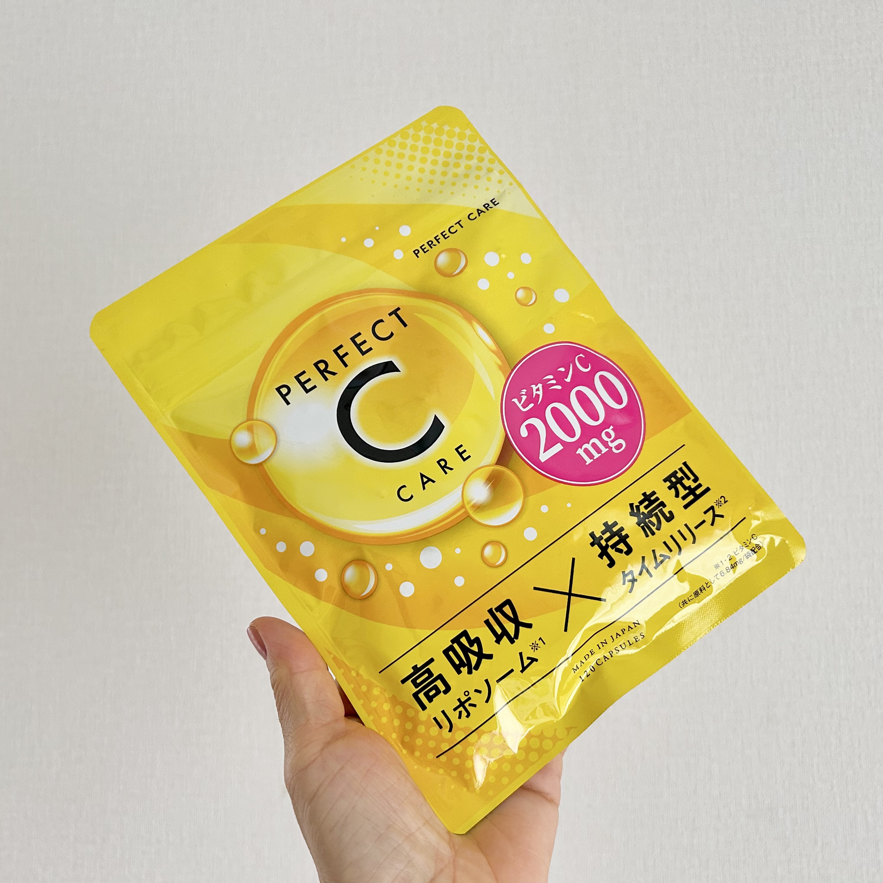 - 【「高吸収*1×持続型*2」で吸収効率UP】 高吸収×持続型の高濃度ビタミンCを配合し、吸収効率をUPさせた、こだわりの高濃度ビタミンCサプリメント。 【 ビタミンC「2000㎎」摂取 】 ビタミンC「2000㎎」摂取!レモン100個分もの高濃度ビタミンCを高吸収×持続型で効率的に摂取できます。 【高濃度・ 高吸収!リポソームビタミンC 】 細胞膜の基本構造と同じ「リン脂質」の二重膜でカプセル化しているリポソームビタミンC。リポソーム化しているので高濃度で、親和性が高く、吸収されやすいのが特徴です。 *1リポソームビタミンC *2タイムリリースビタミンC