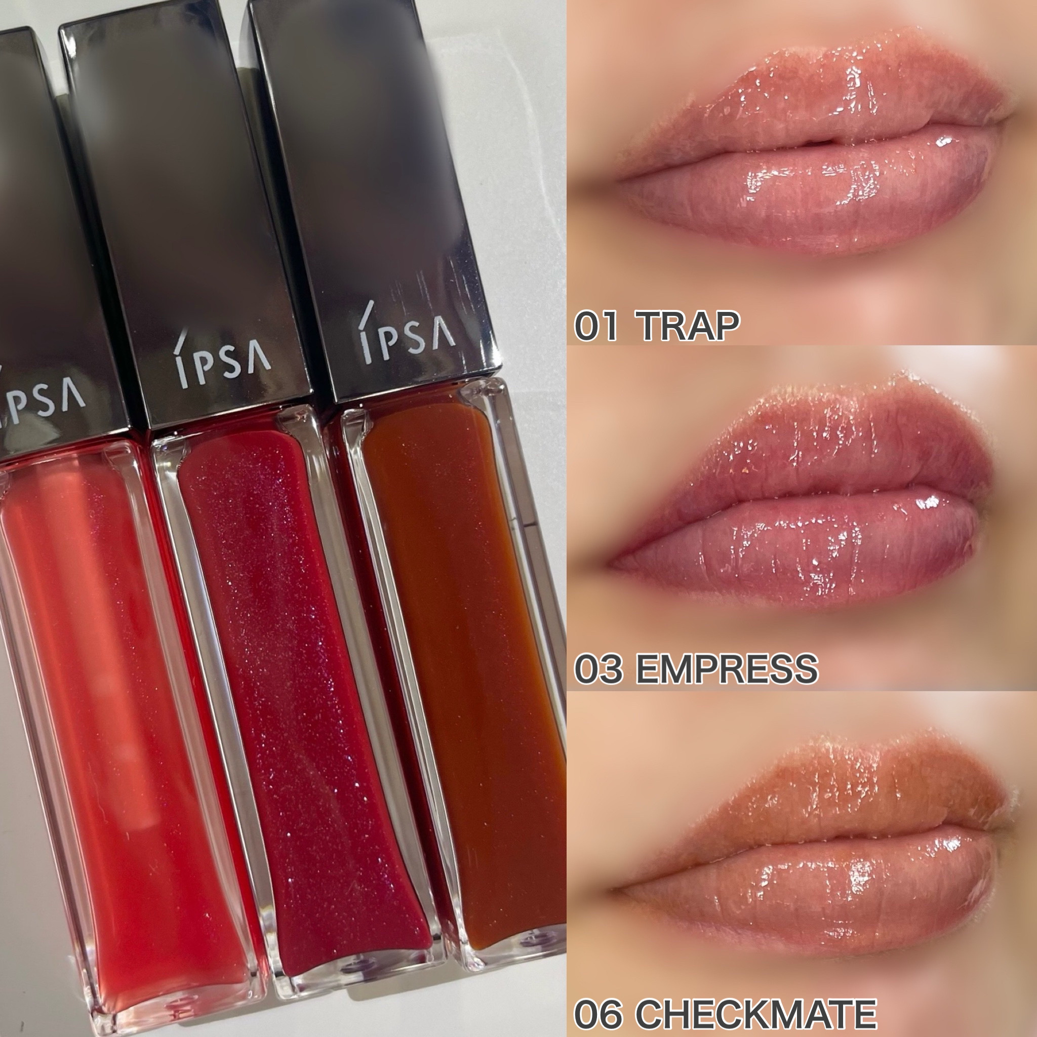 蜜みたいにとろけるうるおいリップオイル🍯✨ 唇に血色感与え、透明感ある発色。 保湿成分のサフラワー油配合で、紫外線やエアコンの影響で乾燥しがちな唇もうるおってぷるんとした仕上がりに。 全6色から私がお試ししたのはブルベさん向けの青み系3色!