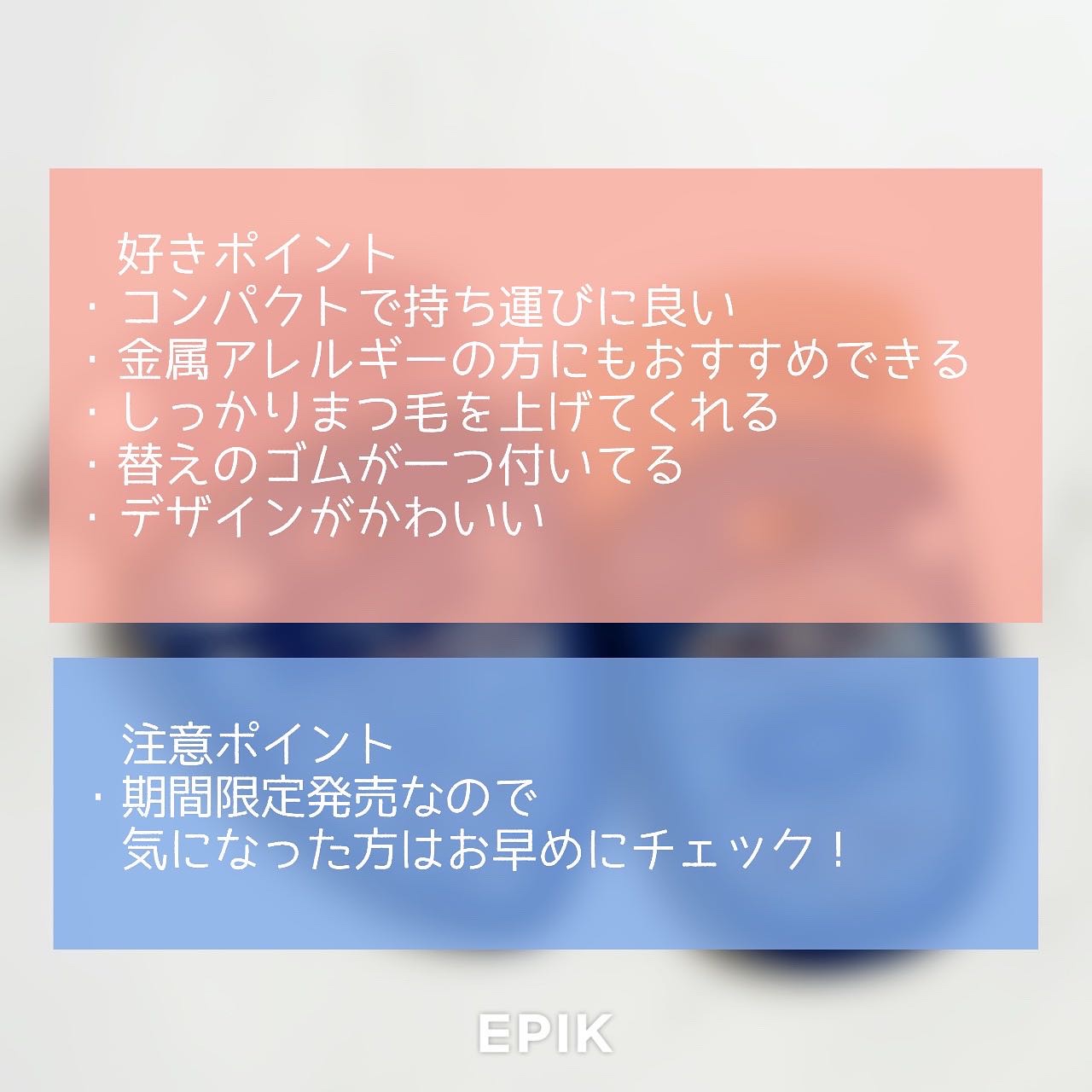 何といってもこの唯一無二のコーム! 私はすごく好きでした。 コームが長くて何列もあるので全くダマにならず キレイなセパレートまつ毛が作れます。 塗り重ねるとロングにキレイに伸びていい。 カールキープ力はめちゃくちゃ高い訳ではなくて、 カールキープ重視の私にはちょっと物足りなかったかな けど下地を使えば全く問題ないし この仕上がりが好きだから全然いいです◎ かなり話題になったマスカラなので使ったことある方は 多いと思いますが、まだの方にはオススメできます!!