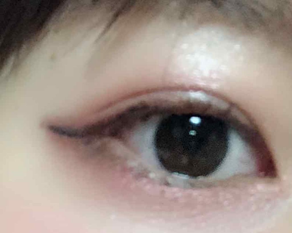 マキアージュドラマティックスタイリングアイズDBR613販売前から気になってて…色はピスタチオが気になってたんですが、瞳の色優先でこの色にしました(●´ω`●)またまた12時間くらい塗ってたってる写真です…←ラメ大好きな私は最初物足りないかな...
