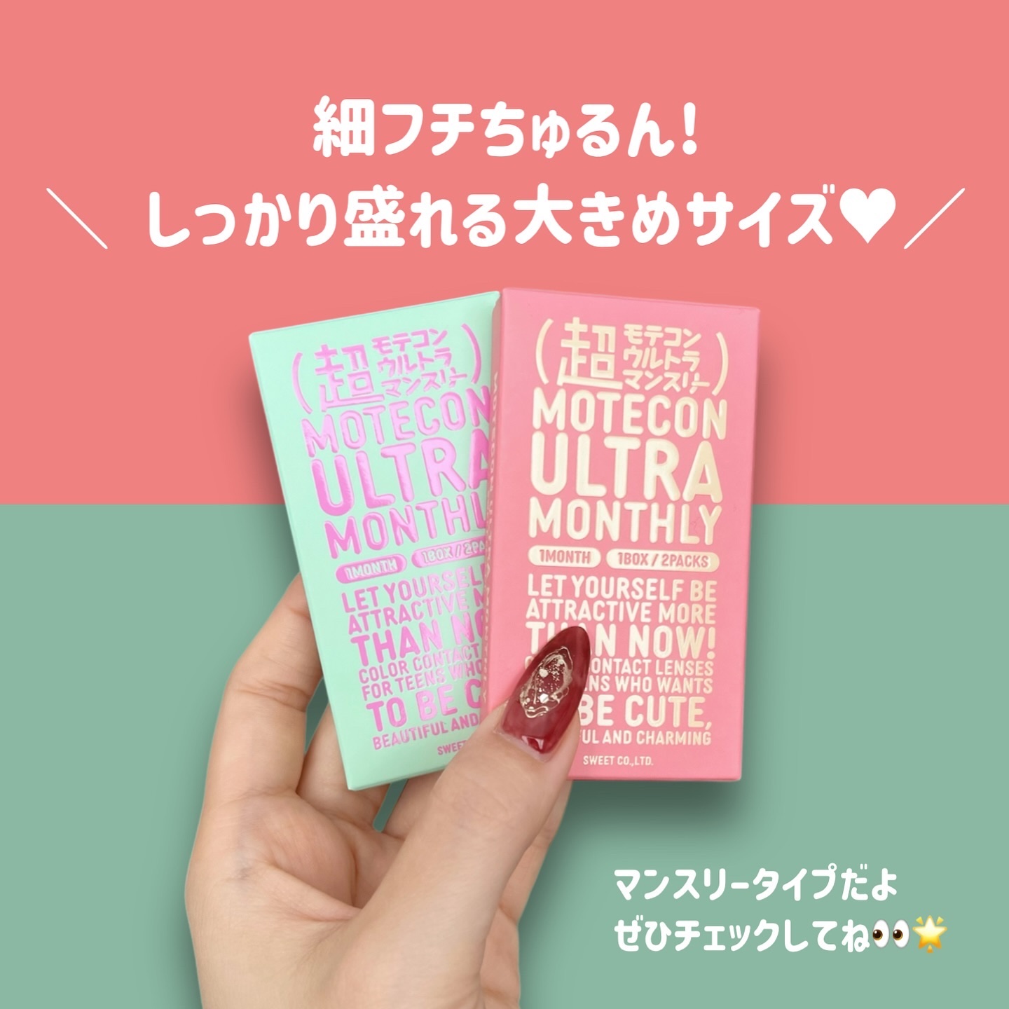- <全22カラー> ・ふんわり瞳にみせてきゅんとさせる「ふわきゅん」シリーズ ・おしゃれ瞳演出でトリコにさせる「おしゃモテ」シリーズ ・思わず見惚れる「つやモテ」シリーズ ・ナチュラルで裸眼風な「うるうる」シリーズ ・なじんで抜け感のある「超ハーフ」シリーズ ・甘顔に盛れる「ウルトラメガ盛り」シリーズ ・待望の新色登場 透明感、垢抜ける、可愛く盛れる、こだわりの発色 カラーコンタクトレンズの不適正使用による眼障害の危険性等などがあります。 ●コンタクトレンズは高度管理医療機器です。不十分な洗浄・消毒など不適切なケアや、長時間・交換期間を超えた装用により、アレルギー性結膜炎、角膜感染症、角膜潰瘍等の重篤な眼障害が発生する危険性があります ●ご使用前に取扱説明書を確認してください 使用上の留意事項 ●眼科医院等を受診してからお求めください ●眼に異常を感じたら直ちにレンズ使用を中止し、お近くの眼科等で診察を受けてください ●医師の指示にしたがってご使用ください ●コンタクトレンズを装用する場合、自覚症状がなくても、眼科医院等での定期検査を受けてください ●レンズに不具合がある場合は使用しないでください