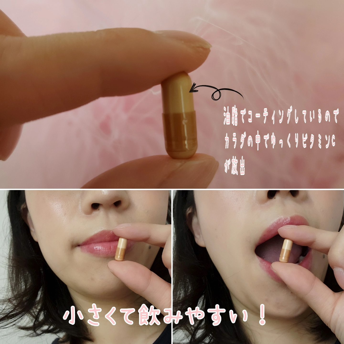 高濃度&高吸収なリポソームビタミンC ✔吸収率を加速するビタミンCブースター ✔ゆっくり放出する持続型のタイムリリースビタミンCが配合されおり、ビタミンCをたっぷり2000mg摂取できるんだそう! ニオイもクセもなく小さめのカプセルだから飲みやすい👍 ビタミンCのサプリって酸っぱいのが多いけど、これなら酸っぱいのが苦手な人でも飲みやすくていいね! 1日4粒が目安との事なので、私は朝夕で2粒ずつ飲んでるよ♪