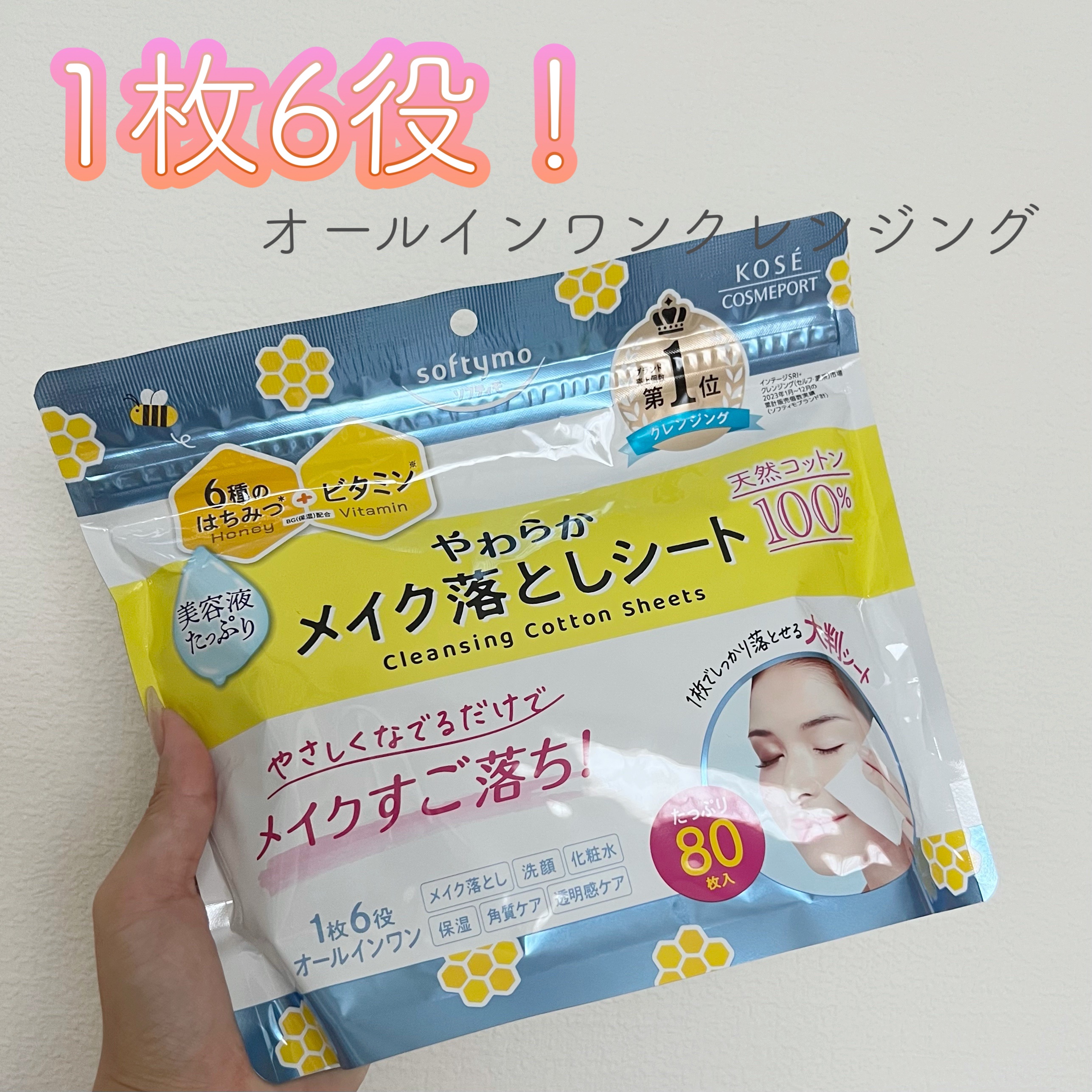 - 1枚6役のオールインワンクレンジングコットン。 やさしくなでるだけで、毛穴や肌のキメに入り込んだメイクもしっかり落とします。 保湿成分をギュッとつめこんだ美容液で、メイクを落としながらうるおいをあたえ、透明感のある肌に。 1枚でしっかり落とせる大判シート&たっぷり大容量。 ※クレンジング売上個数第1位.....インテージSRI+ クレンジング(セルフ・薬系)市場2023年1月~12月の累計販売個数実績(ソフティモブランド計)