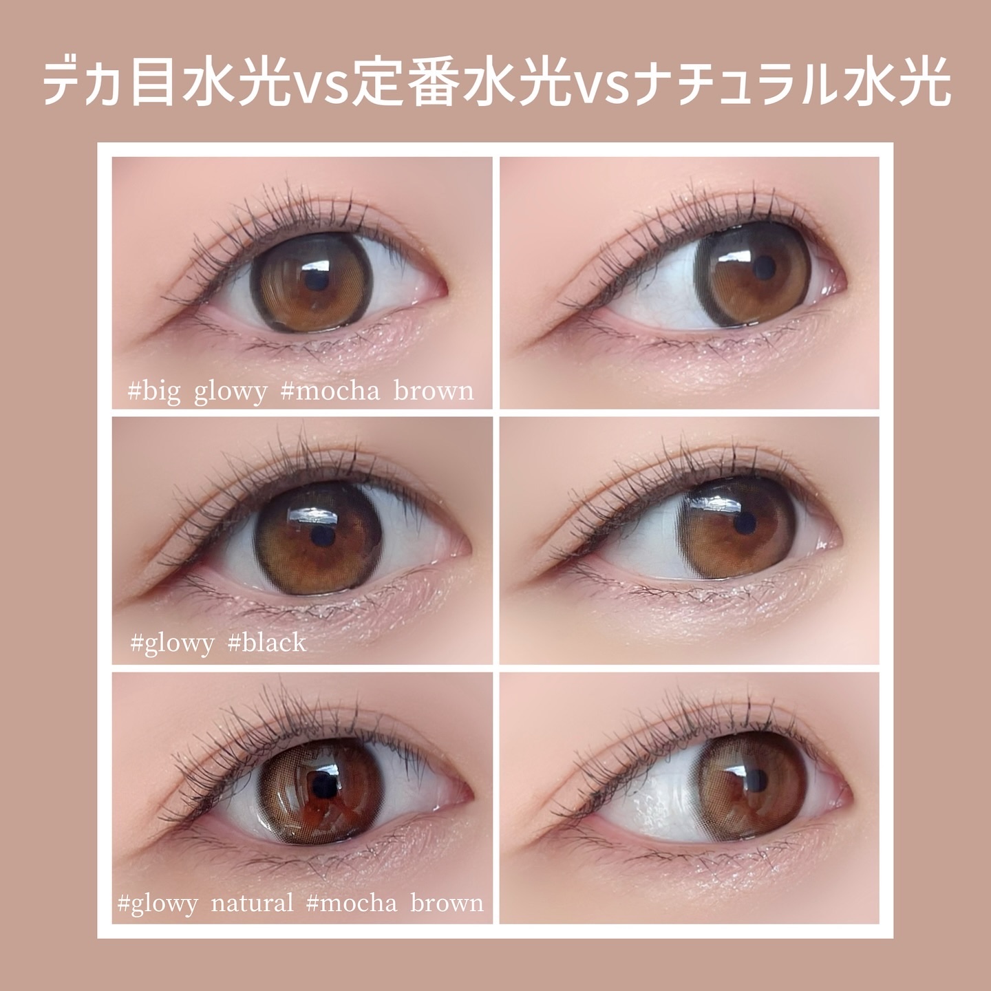 \秋夜に輝く元祖水光カラコン🌙🩵/日本でも大人気のOLENSだけど、実は水光カラコン「Glowyシリーズ」は3つのサイズがあるって知ってた👀??今回は、秋メイクにもぴったりのブラウンカラーを比較してみたよ🤎🤎1番大きい!🤎BigGlowyくっ...