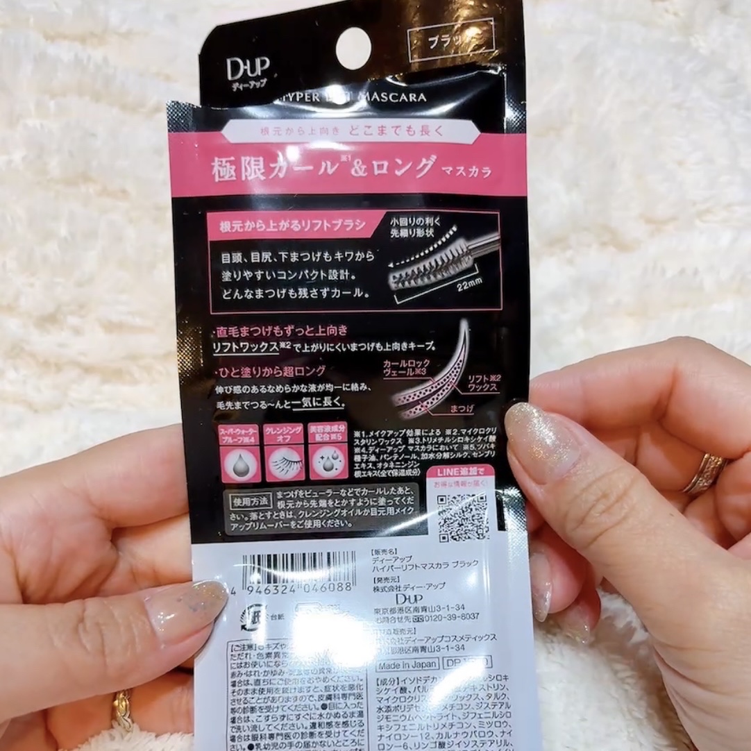 - 2024年10月1日より全国のバラエティショップ、ドラッグストア、公式オンラインショップ(https://store.d-up.co.jp/)にて発売いたします。 『ハイパーリフトマスカラ』は、“カールマスカラで本気のロング”をコンセプトに、ディーアップ史上最強のカールキープ力と驚きの長さを追求した新しいマスカラです。 ■カールキープ力とロング感の両立 カールキープ力の高いマスカラは、通常ワックスや被膜材でカールをキープしますが、同時に「ロング感」や「ダマの無い仕上がり」を両立させることは難しいとされてきました。ハイパーリフトマスカラは、あと1㎜長く、もっとなめらかにするための改良を重ね、「カールキープ力」と「ロング」どちらも限界レベルまで欲張った新処方です。 ■1㎜でも長く!「すご伸びカール」 ロングの秘密は、なめらかで“伸び感”のあるカール液。ファイバーを包み込みながら素早く毛先まで絡み、美しくスッと長いまつげを実現します。 さらに長さを出すため「まつげの根元」にも着目し、生え際から持ち上げて伸ばす、コンパクトなリフトアップカールブラシを新たに採用しました。 『ハイパーリフトマスカラ』で、想像を超える“新次元の上向きまつげ”を体験してください。