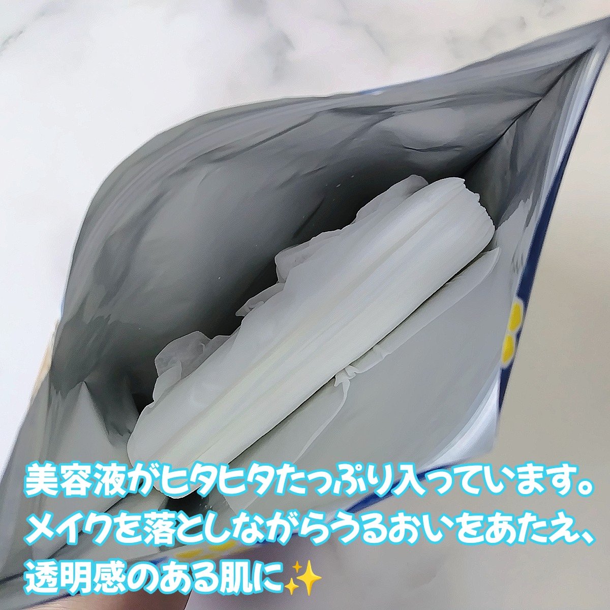 やさしくなでるだけで、毛穴や肌のキメに入り込んだメイクもしっかり落とします♡ 保湿成分をギュッとつめこんだ美容液で、メイクを落としながらうるおいをあたえ、透明感のある肌に♡ 1枚でしっかり落とせる大判シート&たっぷり大容量♡ 1品6役オールインワンで、メイク落とし・洗顔・化粧水・保湿・角質ケア・透明感ケアもできて、メイクを落としながらうるおいを与えてくれるのも気に入りましたꔛ♡ 天然コットン100%やわらか大判シート♡ 大判シートなので全顔1枚でやさしくメイク落としができる♡