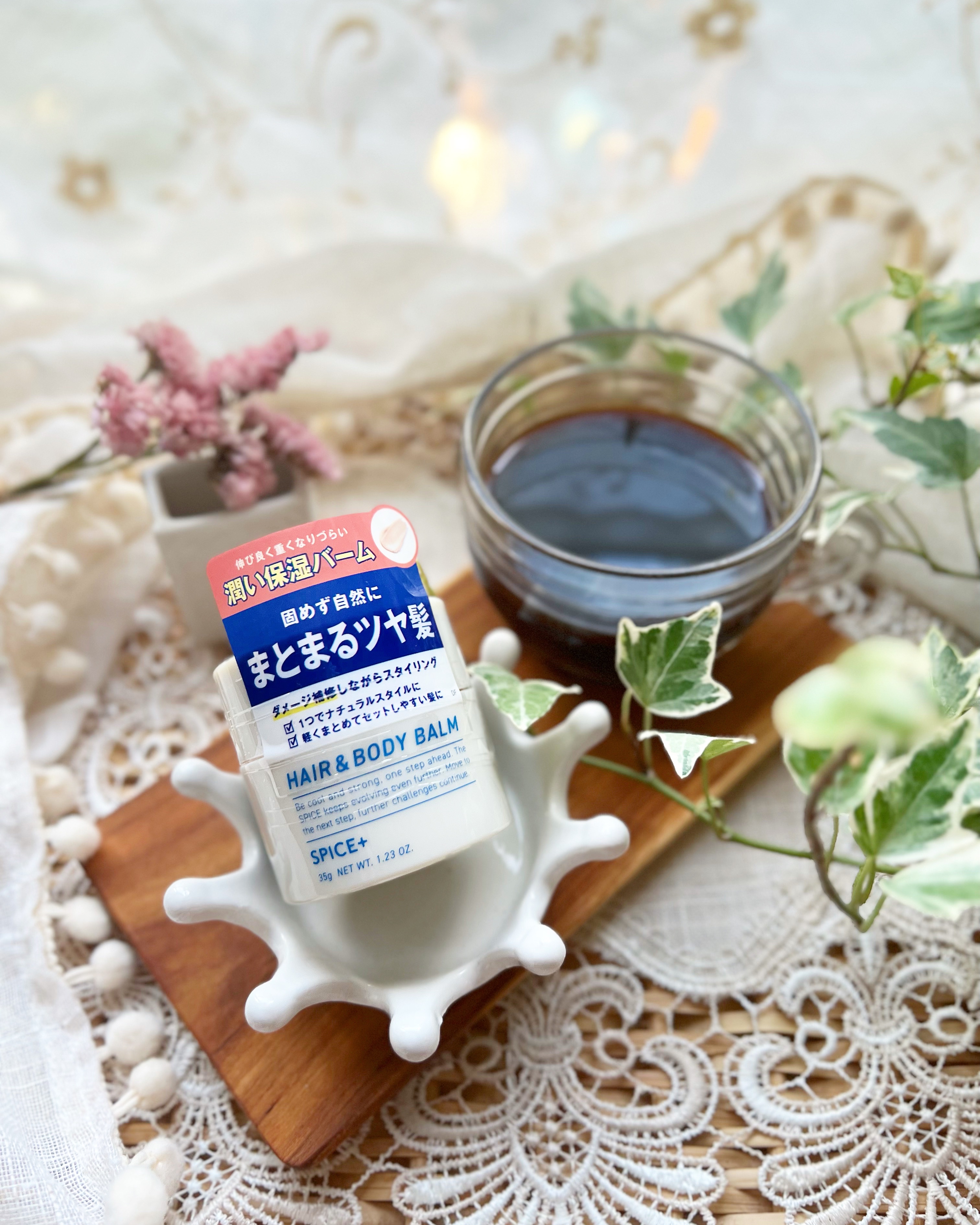 スパイスプラス ヘア&ボディバーム→ダメージ補修しながら、ナチュラルにスタイリングができるバーム。名前の通り、ヘアだけでなくボディにも使えます!→テクスチャーはしっかりとしたバームで、伸びが良く、自然な髪に仕上がりました。ヘアセットした後、ハ...