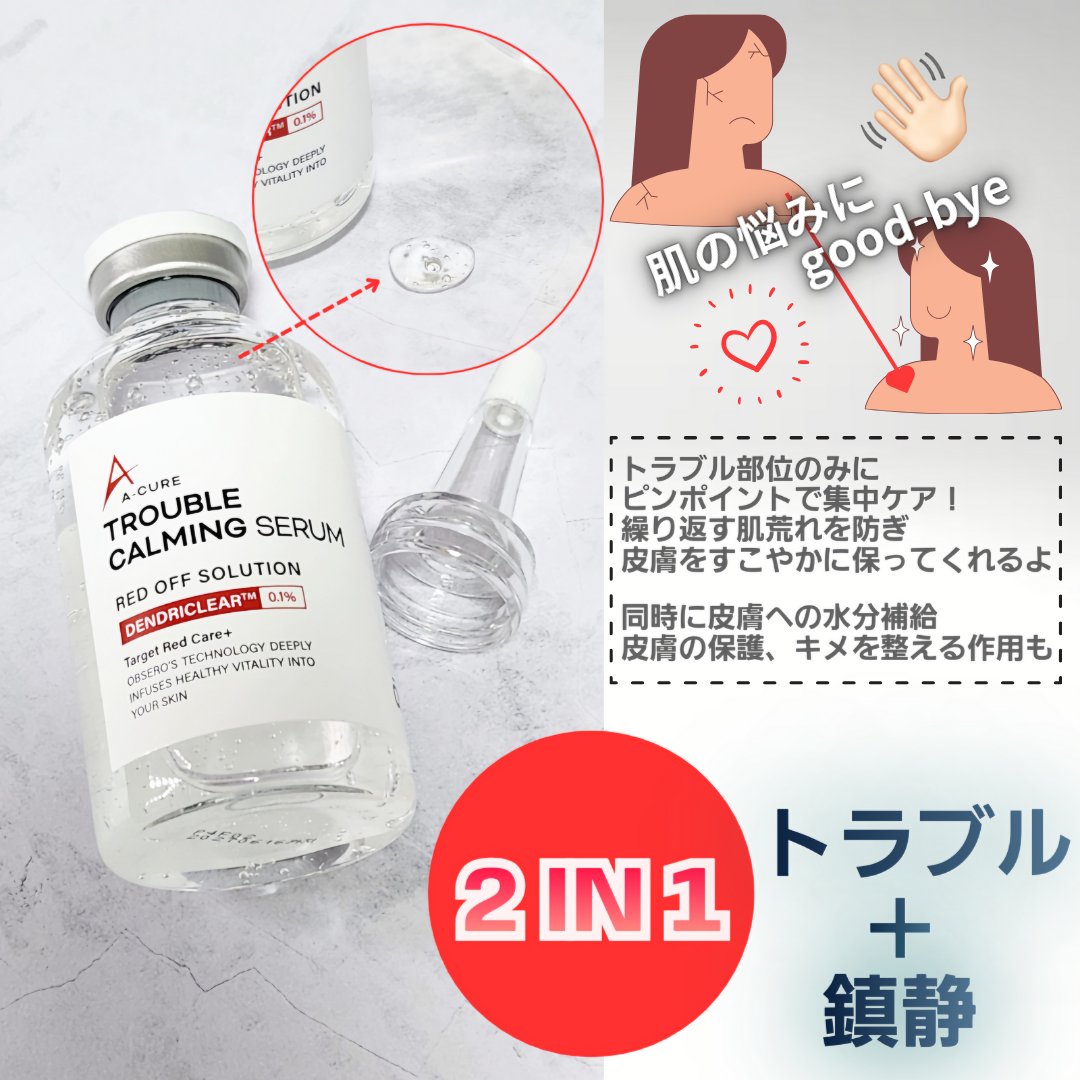 肌の赤み、周期トラブル、季節の変わり目の敏感肌ケアにおすすめなのがコレ‼️ トラブル原因をターゲティングしてスポットケアする鎮静セラム💚 ツボクサエキスより優れる鎮静成分(3つの鎮静成分配合)で肌トラブルを急速鎮静✊