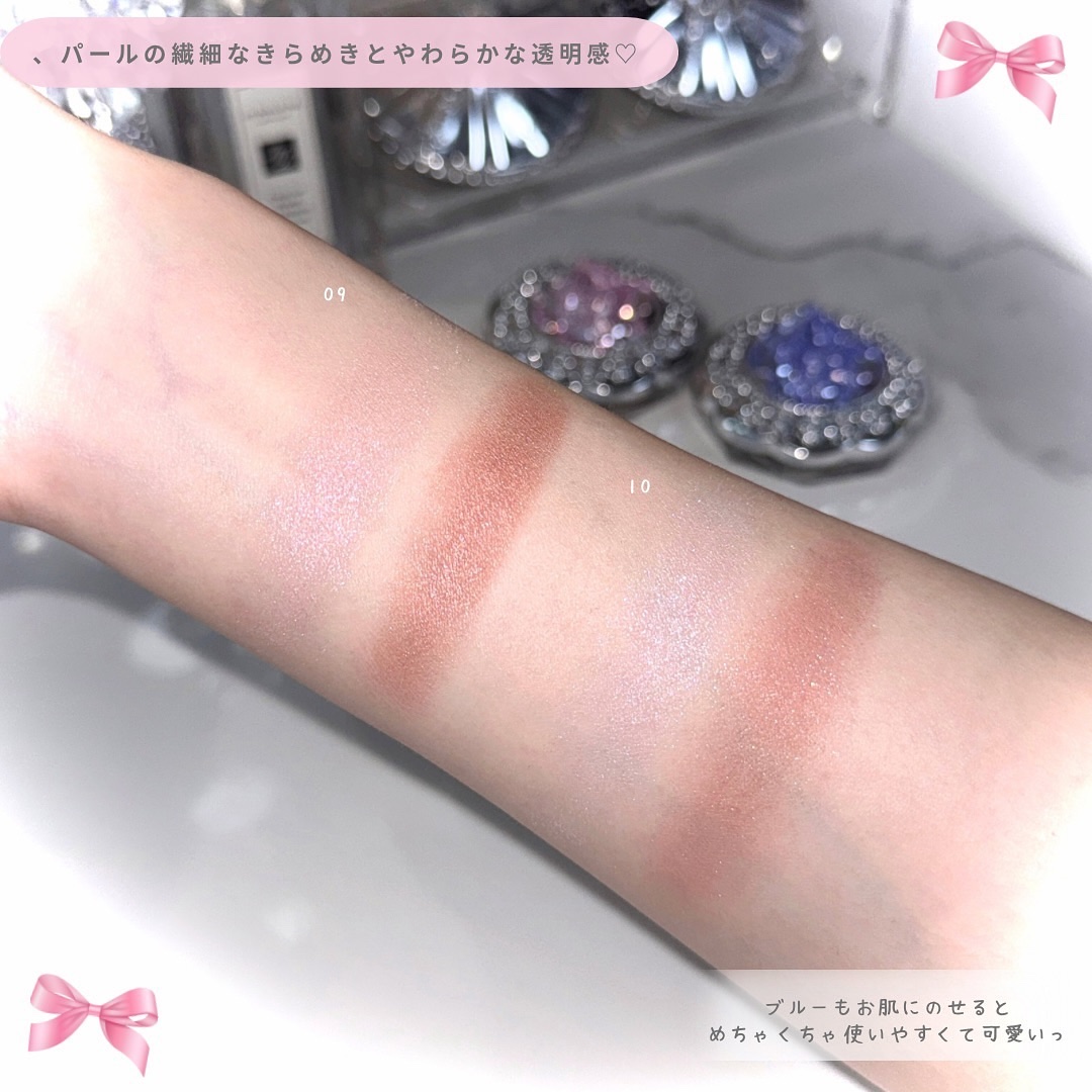 - ●歴代のクリスタルブルームシリーズから着想したカラーと香りが、サプライズ感を演出する2色セットのアイカラー。パールの繊細なきらめきとやわらかな彩りで、透明感溢れる目もとに仕上げます。 ●毎月、花言葉を添えて、全12種を展開します。 ●パールを楽しむペタルクリスタルカラーと、ソフトな色を楽しむペタルブルームカラーの2色セット。 ●ペタルクリスタルカラーは透明感の高いパウダーや、くすみの少ないパウダーを配合。白膜感が少なく、高密着パールのきらめきが長続きします。また、重ねてのせればお好みのきらめき感を楽しめます。 ●ペタルブルームカラーの質感はマット、サテン、パールタイプと様々。どのタイプも軽いタッチのオイル成分が汗や皮脂をブロックするため、つけたてのように透明感のある美しい発色が、質感とともに持続します。 ●2色(A/B)の間は仕切りがないため、単色でも、お好みで色を混ぜても使用できます。 ●09はBeloved CharmをイメージしたピンクXブラウンです。クリスタルブルーム ビーラブドチャームの香り。 ●10はMoonlight MagicをイメージしたアイスプルーXブラウンです。クリスタルプルーム ムーンライトマジックの香り。 ●アルコール(エチルアルコール)フリー、パラベンフリー。