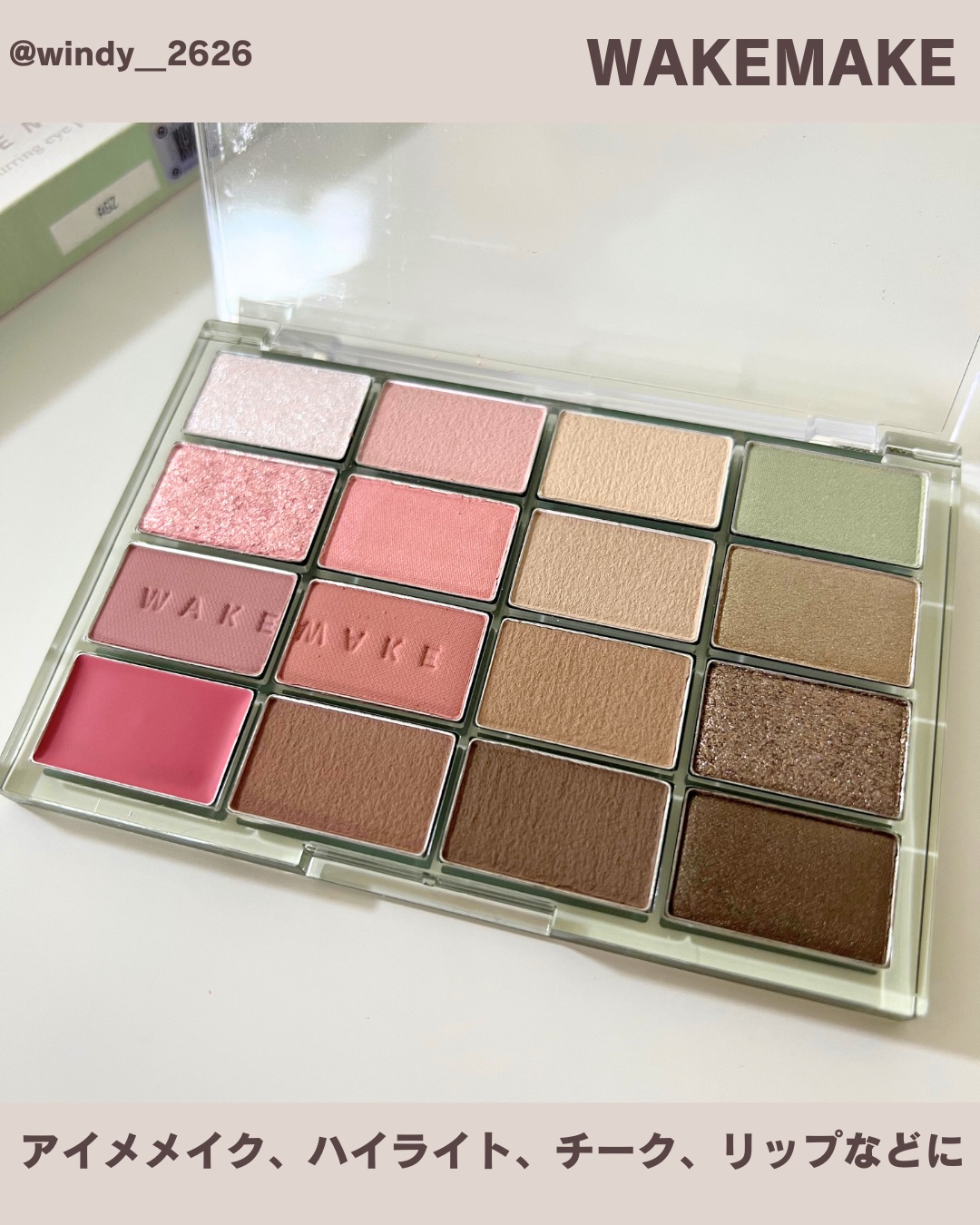 WAKEMAKEずっと欲しかったんだ〜💗 新作の秋パレ🎃🍁🍄🌰 21はクールトーン向けの色味だよ✨️ アイメイクだけじゃなく、ハイライト、チーク リップとしても使えるマルチパレット! どの色味もかわいい…! 秋のカラーメイクたのしむぞー!😆