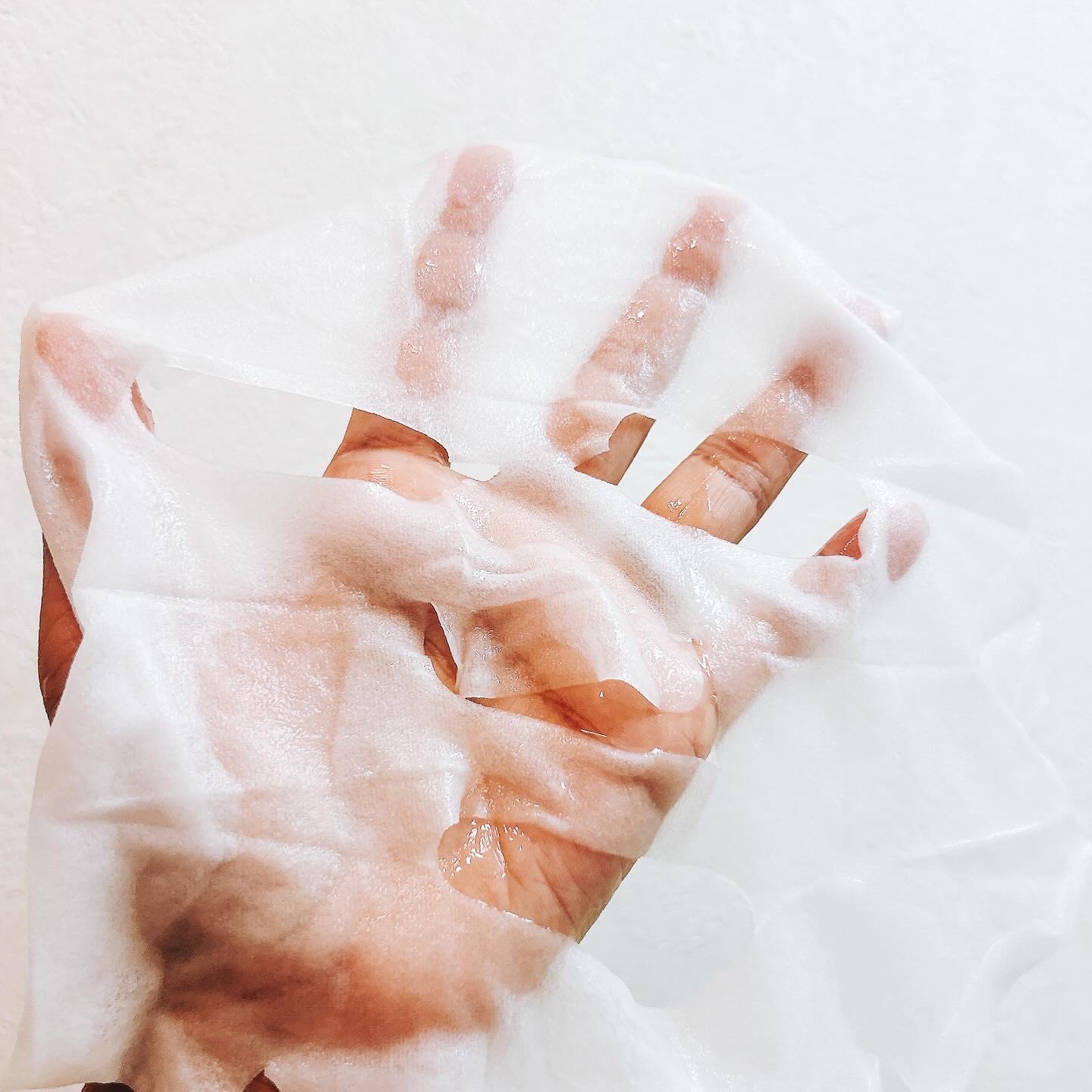 贅沢潤い高めのマスク♪ かなり美容液がヒタヒタでマスクを取り出すと美容液が垂れ落ちるので優しく出した方がいいかも! オーガニックでカフェインの成分が入ってるのが目新しい✨ 匂いはコーヒーの様な香りなど特に無く違和感無し。 翌朝も顔はベタベタで顔を洗うとしっかり保湿されてました✨