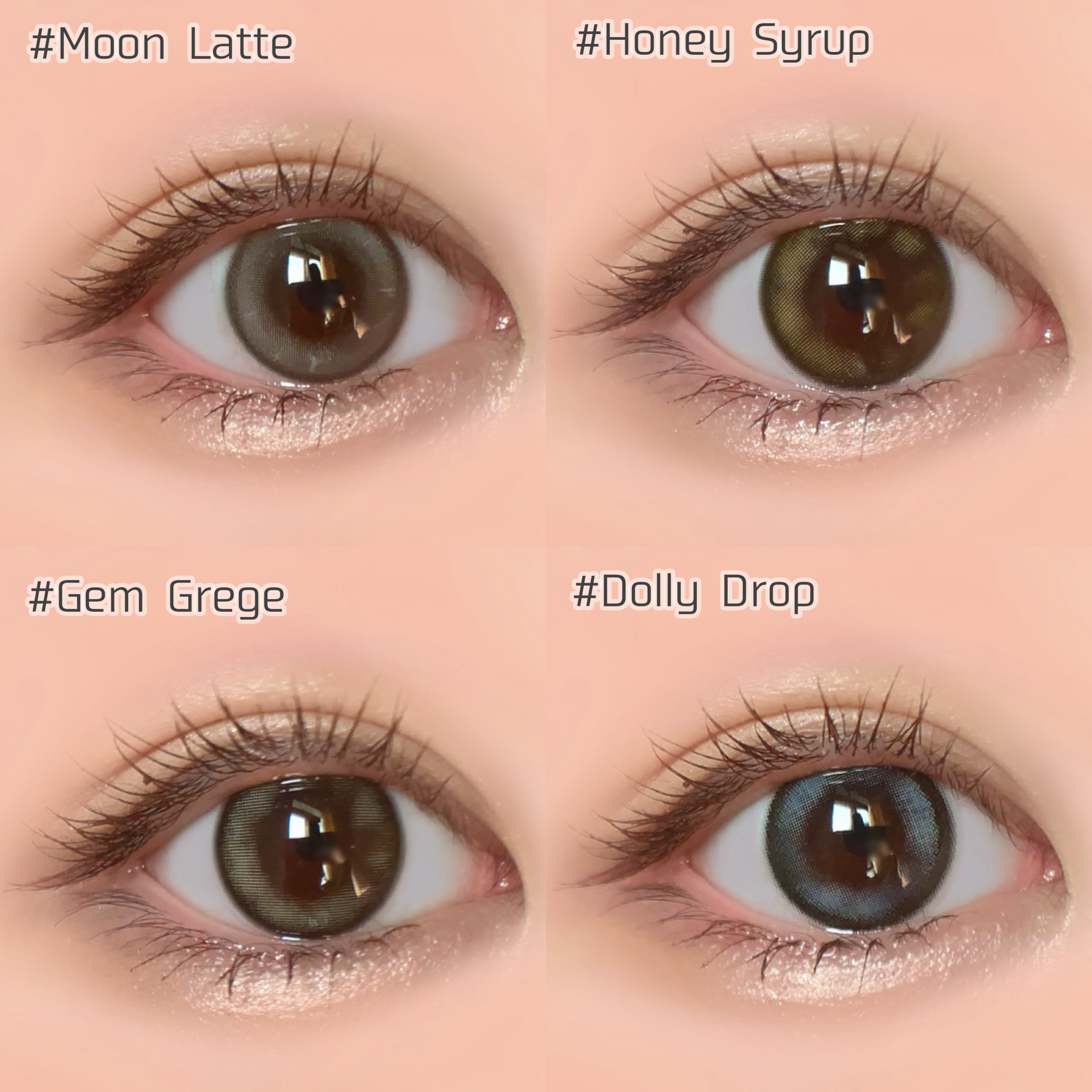水光レンズで叶えるきゅるきゅる儚げ透明感eye カラコンオタクが考え抜いた本気レンズデザイン! 透明感のある水光レンズで、裸眼よりも圧倒的に盛れます✨ ムーンラテ→13.0mm ハニーシロップ、ジェムグレージュ→13.5mm ドーリードロップ→13.6mm