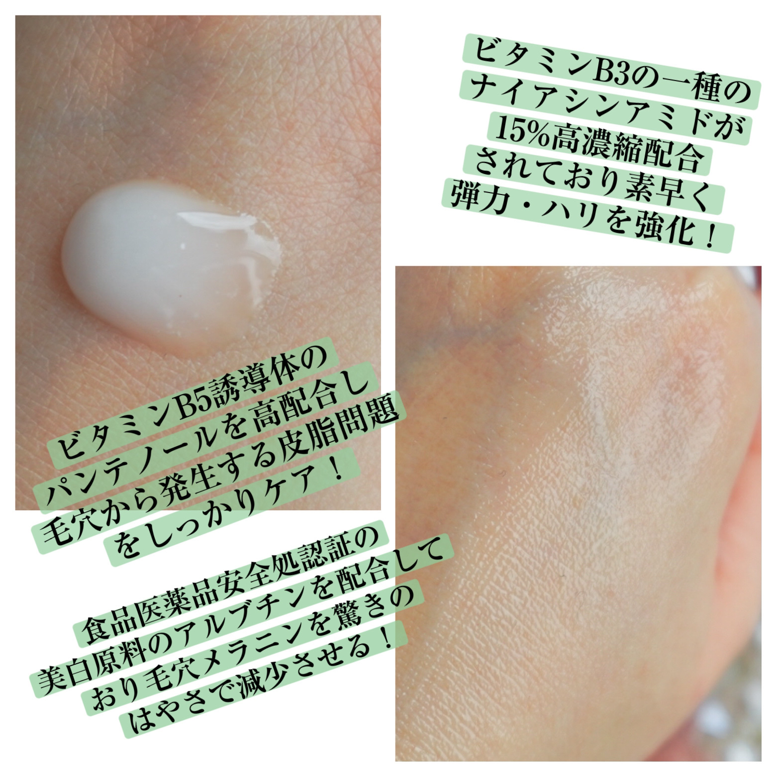 ナイアシンアミドが15%高濃縮配合 弾力やハリを素早く強化! トロッとしたテクスチャーですが、お肌に乗せるとサラッとした軽めの着け心地🫧 化粧のノリもよくお肌の調子も◎ 毛穴の変化も楽しみに継続して使ってみます♪
