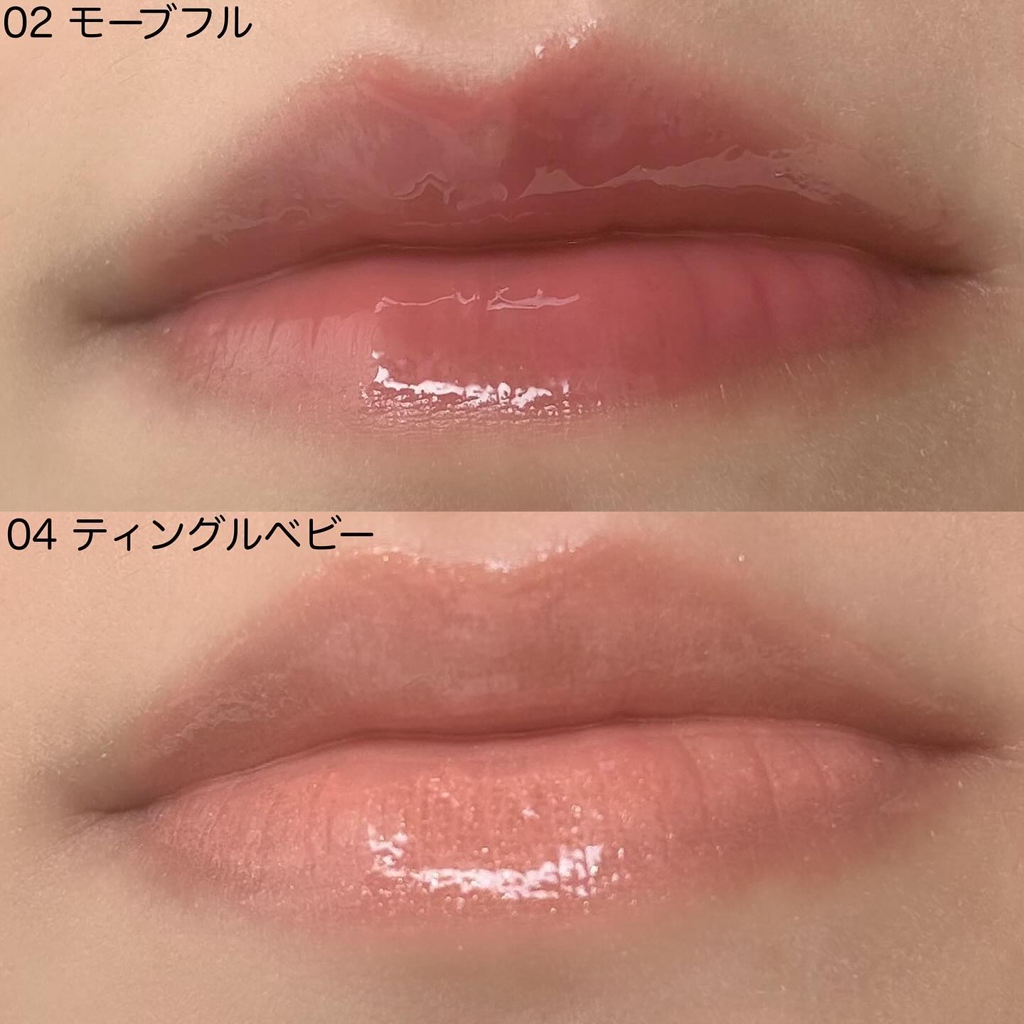 まず塗り心地 スルスル〜って塗れて発色も良い🙆♀️! ジェル膜処方だから色持ちもかなりいいなと思った! 唇にピタッとフィットしてくれる感じがあって、むちっとした唇にしてくれるのが嬉しすぎる🥹💗 04ルビーラビリンスは、ブルベさんにオススメな大人ピンク💗 10サクラシーンは黄みよりのピンクだからイエベさんにオススメ🌸💗