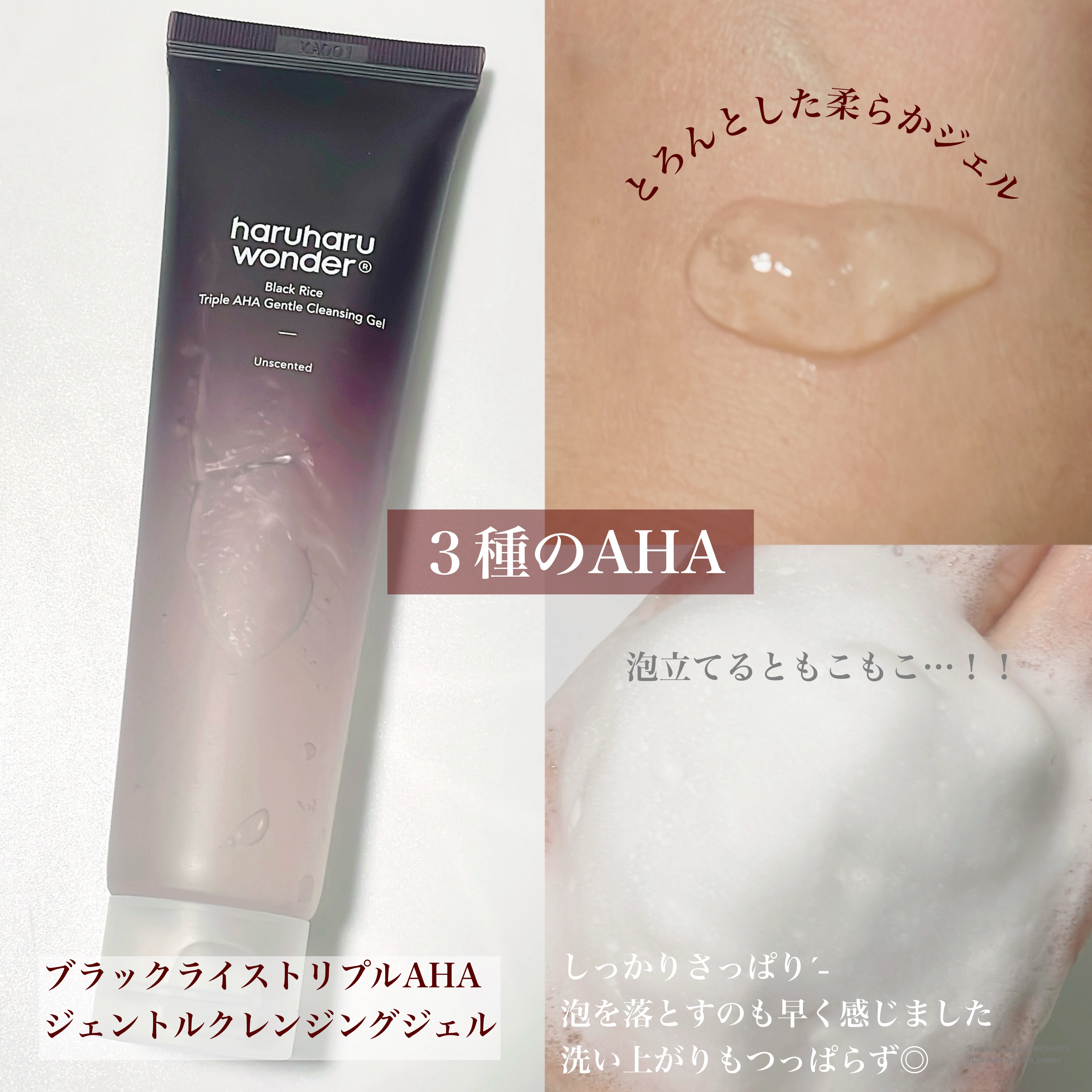 ナチュラルヴィーガンスキンケアを展開するハルハルワンダー。人気のブラックライスシリーズより、クレンジング2種をレビュー✨ しっとりと馴染む使い心地。実はこれで使用3本目のお気に入りクレンジングオイル。クレンジング中に目を開けても痛くないところが好き👀 ぷりぷりすっきり、軽めのメイク、メイクオフもできる洗顔を求める方はブラックライストリプルAHAジェントルクレンジングジェル。