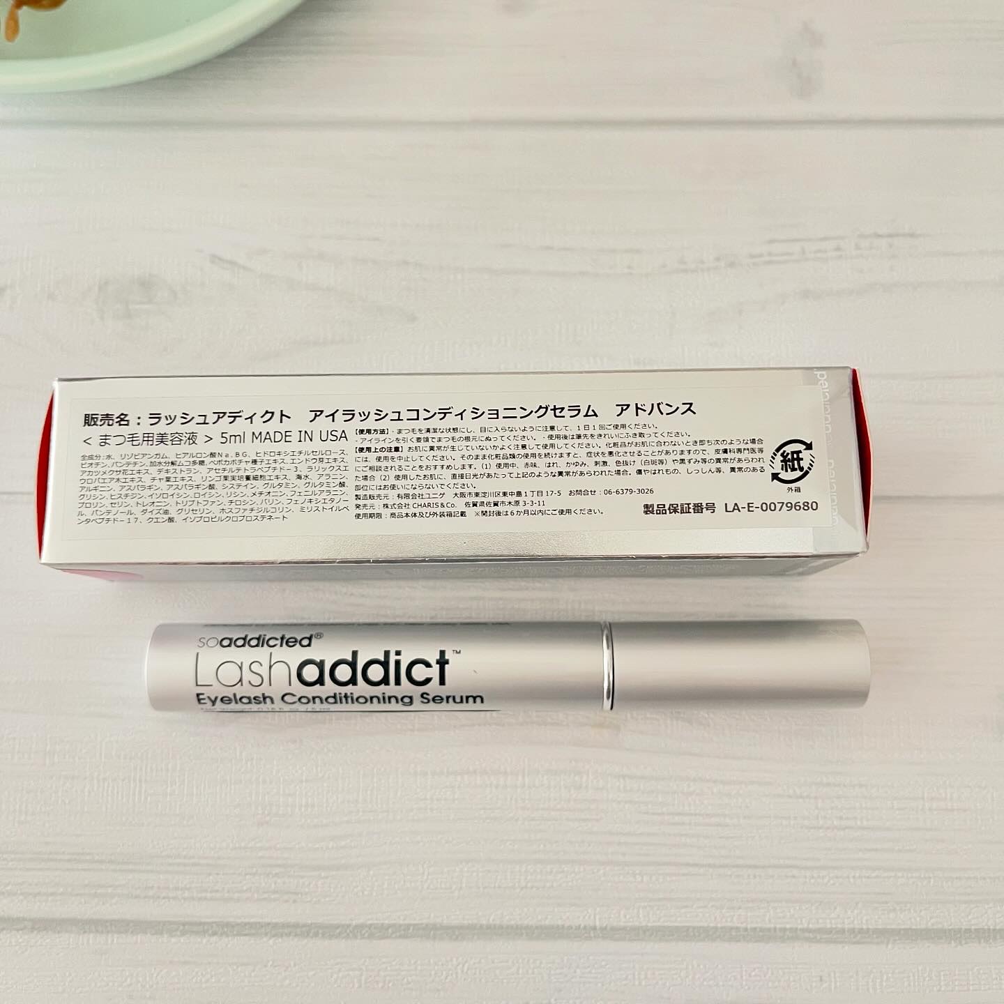 - <ラッシュアディクト アイラッシュ コンディショニング セラム アドバンス> 水、リゾビアンガム、ヒアルロン酸Na、BG、ヒドロキシエチルセルロース、ビオチン、パンテチン、加水分解ムコ多糖、ペポカボチャ種子エキス、エンドウ芽エキス、アカツメクサ花エキス、デキストラン、アセチルテトラペプチド-3、ラリックスエウロパエア木エキス、チャ葉エキス、リンゴ果実培養細胞エキス、海水、アラニン、アルギニン、アスパラギン、アスパラギン酸、システイン、グルタミン、グルタミン酸、グリシン、ヒスチジン、イソロイシン、ロイシン、リシン、メチオニン、フェニルアラニン、プロリン、セリン、トレオニン、トリプトファン、チロシン、バリン、フェノキシエタノール、パンテノール、ダイズ油、グリセリン、ホスファチジルコリン、ミリストイルペンタペプチド-17、クエン酸、イソプロピルクロプロステネート