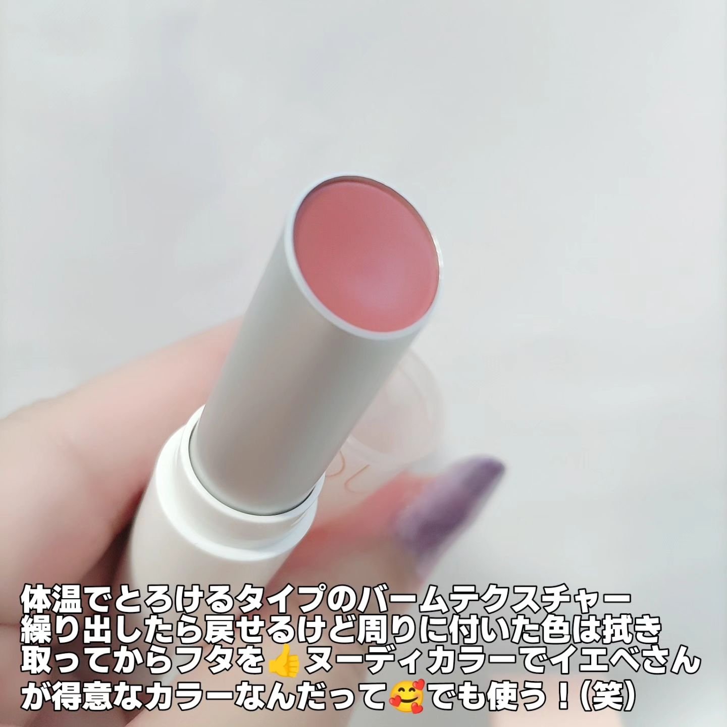 - もちっとした水膜で弾けそうなツヤリップ 1.軽い塗り心地のなめらかで透明な水爆弾ツヤ 2.塗った瞬間から唇を鮮やかに彩る多彩なカラーバーム 3.植物性保湿オイルでしっとりもっちり保湿バーム