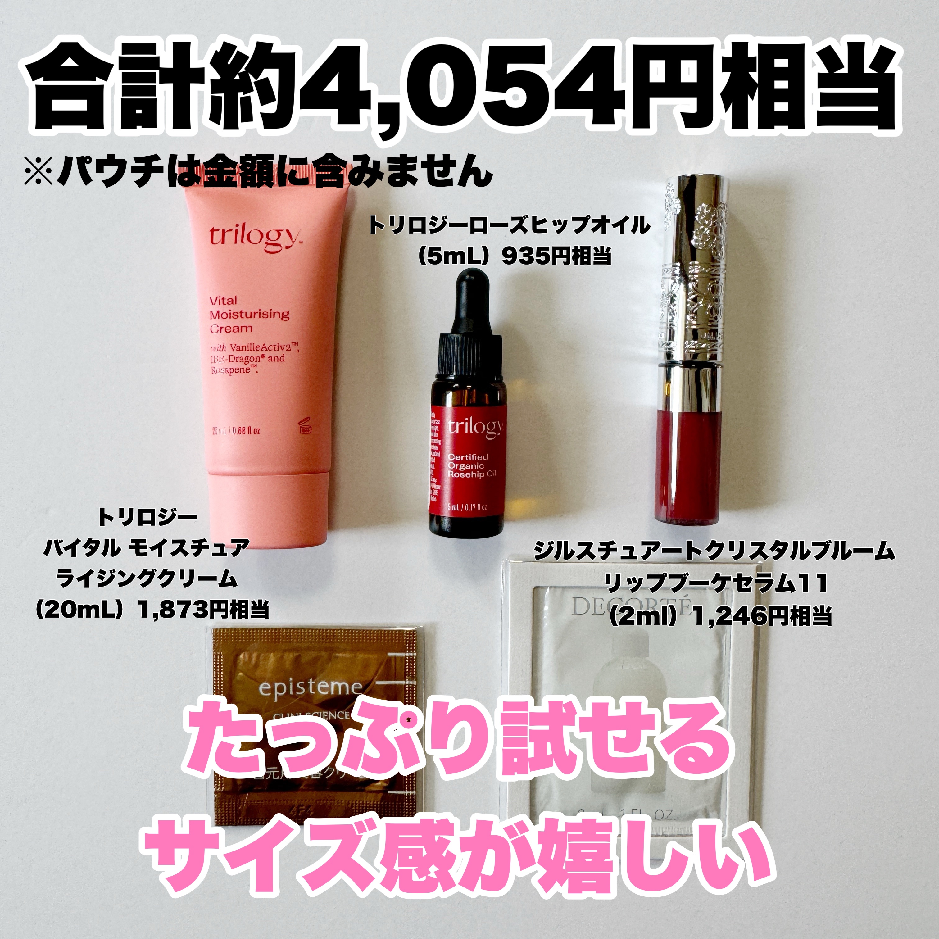 今回の付録は私的に大当たり🎯 気になっていた新作コスメがたっぷりサイズでお試しできるとても豪華な内容です🙌🏻 特にランコムのジェニフィック、ワンバイコーセーの美容液、ポール&ジョーの化粧下地の3つはリニューアルしたばかり(まもなくリニューアル)の新作で、それがたっぷりサイズのミニボトルで試せるのはすごく嬉しい! 新配合したβグルカンはヒアルロン酸以上に保湿力が高いそうなので、そのおかげかも。