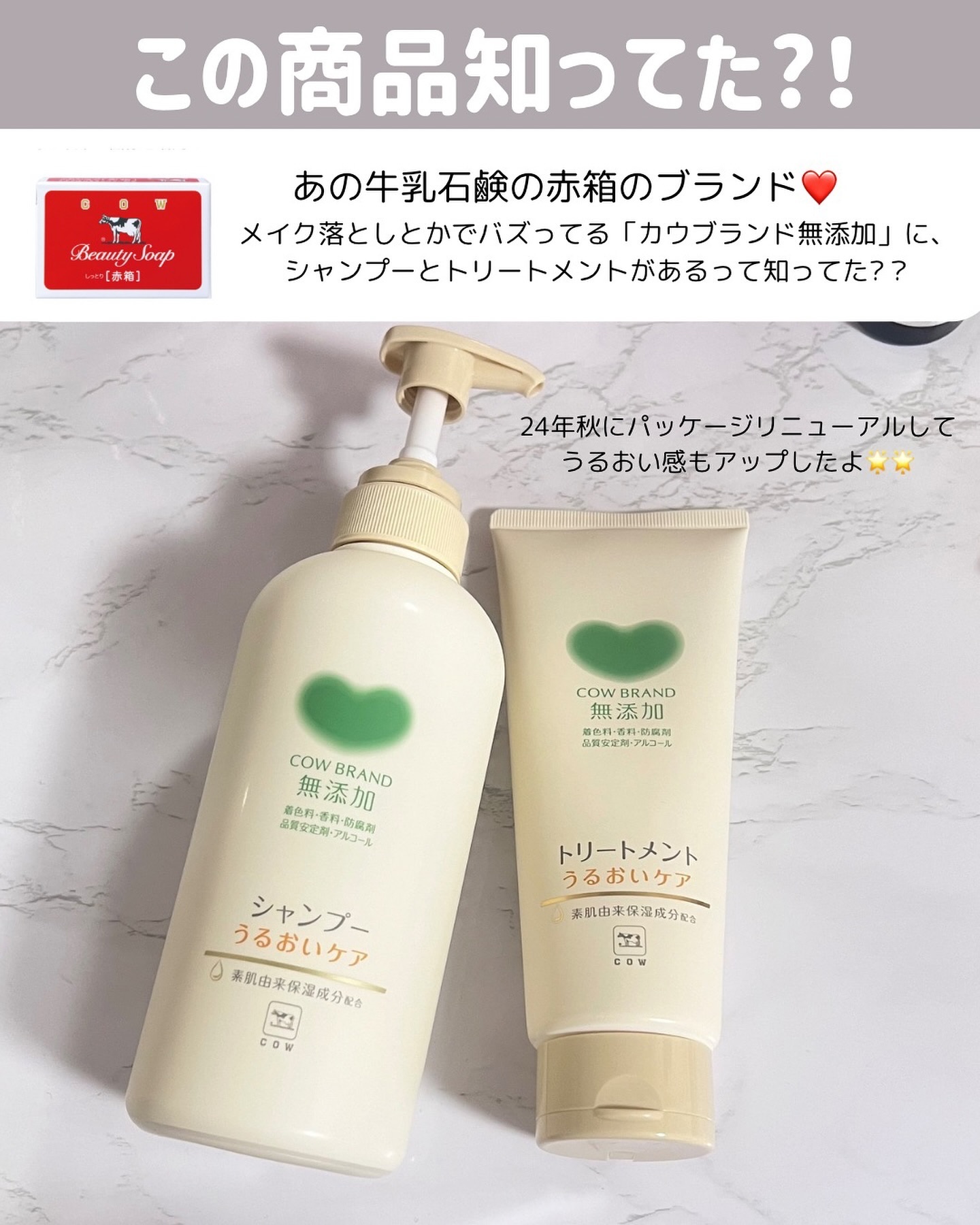 \家族みんなで使えるシャントリ♡/メイク落としミルクや洗顔がSNSでバズってるカウブランド無添加@mutenka_officialに家族で使えるシャンプー&トリートメントもあります❣️*カウブランド無添加はあの赤箱で有名な牛乳石鹸の会社から...