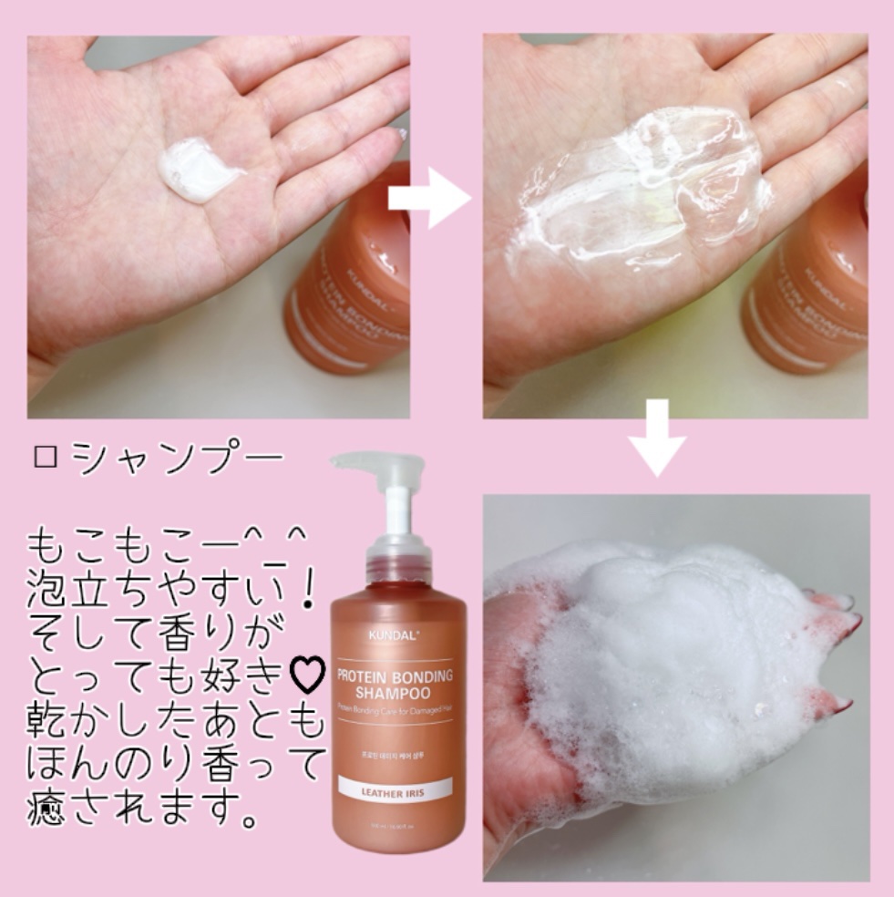 韓国で大人気のプレミアムヘアケアブランド「KUNDAL(クンダル)」。プロテインダメージケアラインのシャントリを使わせて頂いた。 植物由来のタンパク質成分で補修するヘアケアライン。他にも、6種のヒアルロン酸、3種の花のエキスが配合され、うるおいとツヤのある仕上がりへ導くとのこと。 香りが良い!専門の調香師と研究所による香りは、上質な高級感があって、しかも長続き。今回使用した香り「レザーアイリス」は、レザーのスモーキーで落ち着いた香りと、アイリスの上品な香りの対照的な調和がオシャレ✨