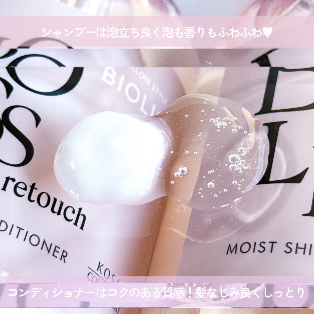 シャンプーはとろんとしたテクスチャー トリートメントはなめらかでふわっとやわらかいテクスチャー 泡立ちや泡切れがとっても良く キシむことなくしっとり根本からふんわりと軽い仕上がりに ほんのりと優しく華やかな香りの持続力も良かったです