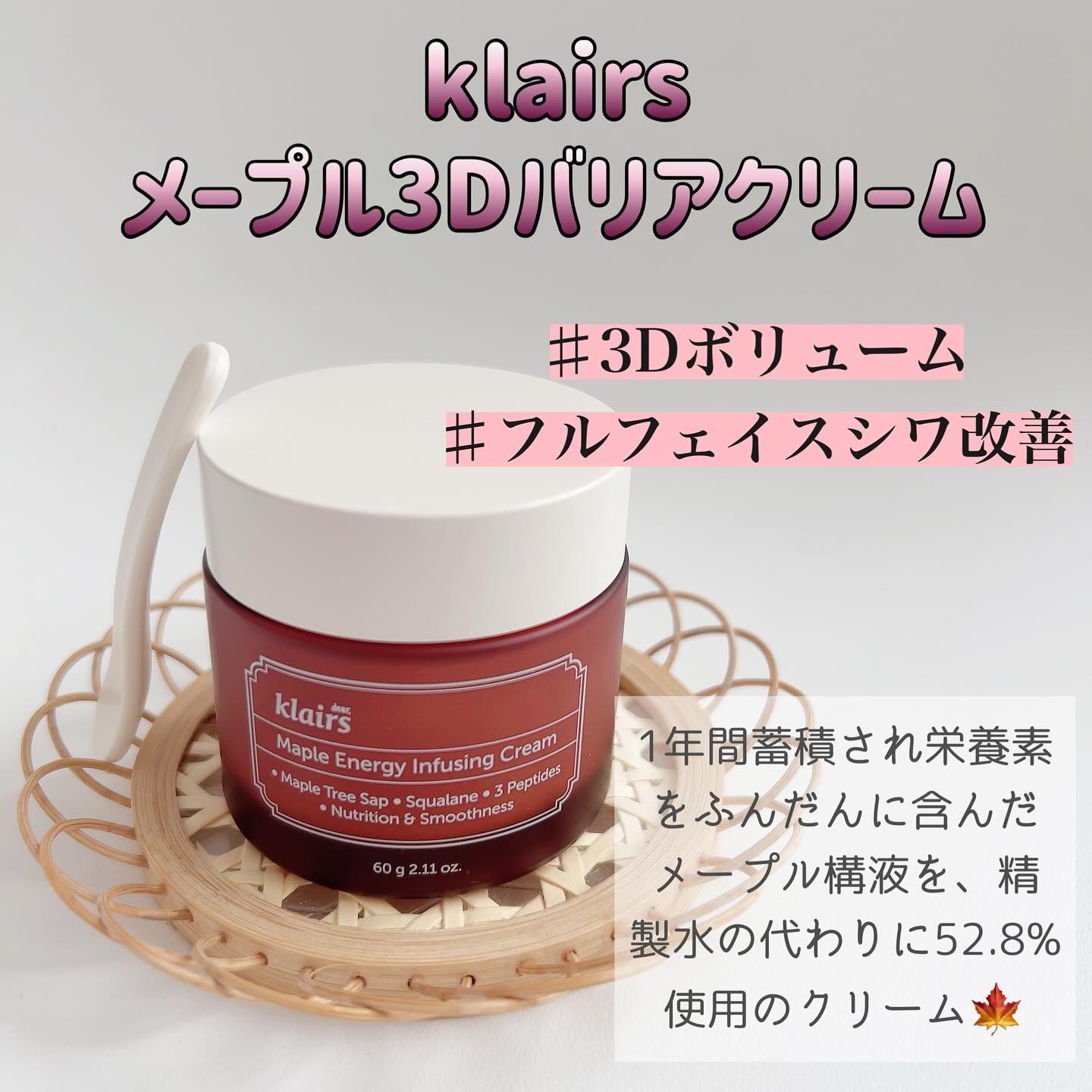 メープル樹液とは…氷点下5度から20度に迫るカナダの厳しい冬を乗り越えるために蓄えている水分。1年にたった一度しか採取できないとっても貴重な樹液。 メープルの樹液エナジーをお肌にたっぷり満たして内側から弾力をバリア。ハリがありイキイキとしたお肌に導く。 セラムと合わせて使うとより効果的との事なので一緒に使っています。