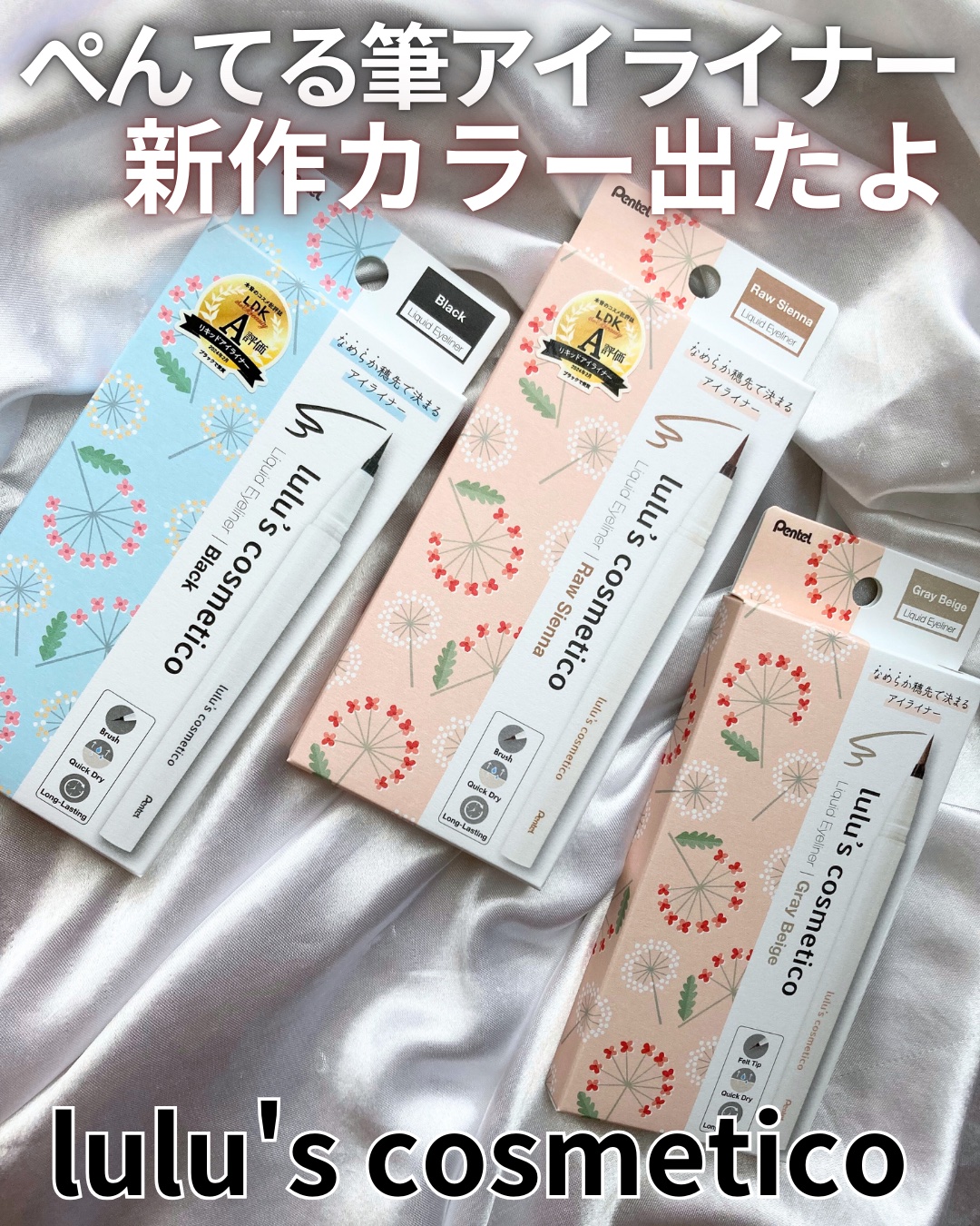 筆記具メーカーのぺんてるの化粧品ブランド「lulu’s cosmetico(ルルズコスメティコ)」 ぺんてる筆の描きやすさ!なめらか穂先のリキッドアイライナー✨ 発色もよくベーシックなカラーから抜け感カラーもあるから気分やシュチュエーションに合わせて使えて目元を鮮やかに演出してくれるよ🌿.∘