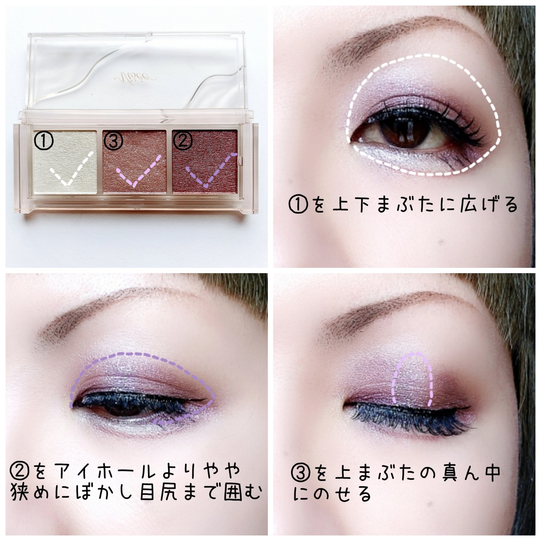 プチプラのクオリティじゃないっ!! 発売前からチェックしていたけれど、ここまで可愛いとは…😆 絶妙カラーで目もとのくすみを飛ばして*明るい印象に🩷 横割りグラデーションでメイクし、立体感をより出したかったので最後に1番左のカラーを上まぶたの真ん中と涙袋にのせています🙆 肌馴染みも良くて粉飛びも感じにくかったです💕 ブラウンの方も店頭に出てたら買おうかな💓