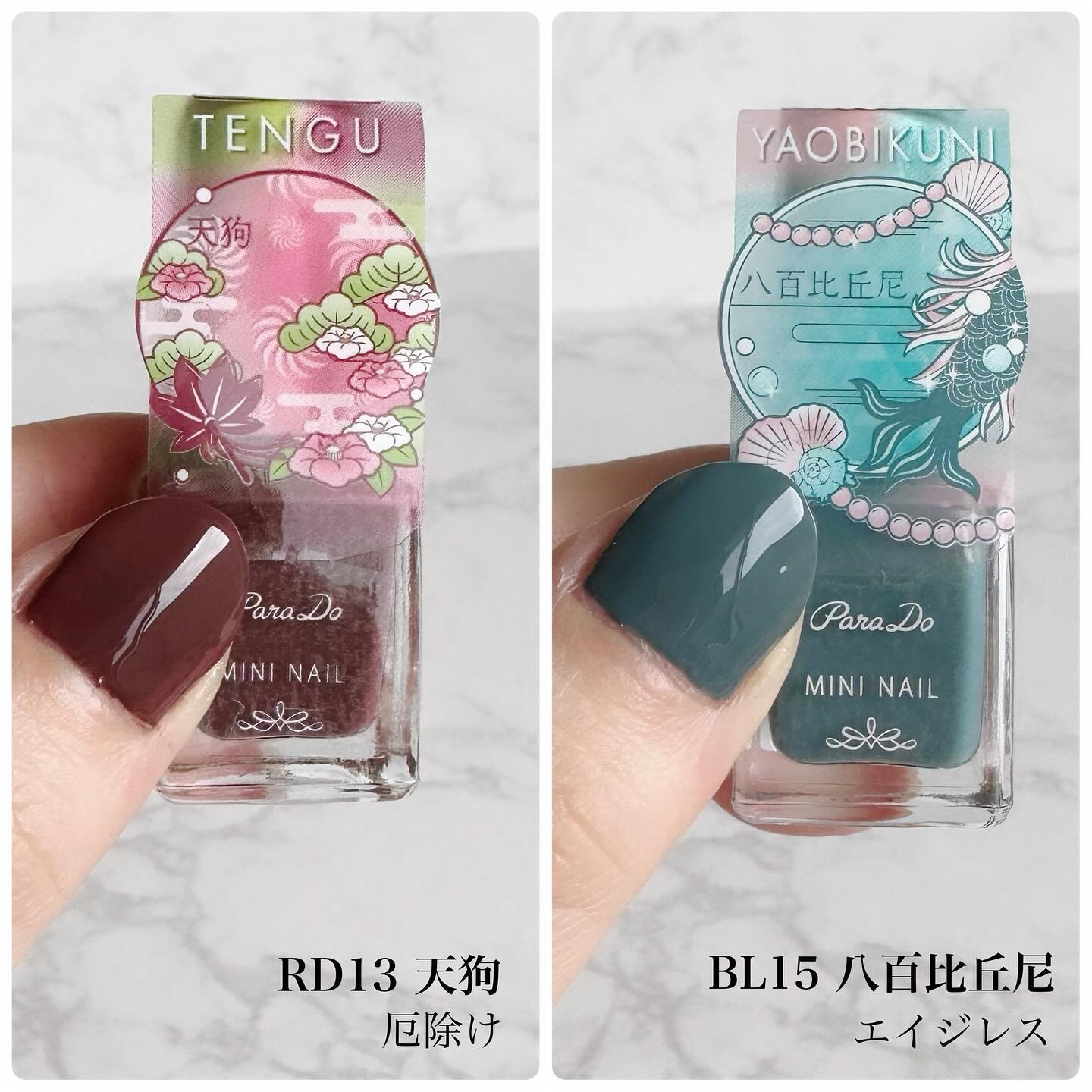 パラドゥミニネイル24年秋冬新色 AYAKASHI~妖~をいただきました! 日本古来からご利益があるといわれている妖たちにインスパイアされたカラーが勢揃い! 385円という安さ! ワンシーズンで使い切れるミニサイズなので飽きることなく堪能できます🍁✨ ネイルの色と併せて妖がもたらすご利益も楽しむことができます😌