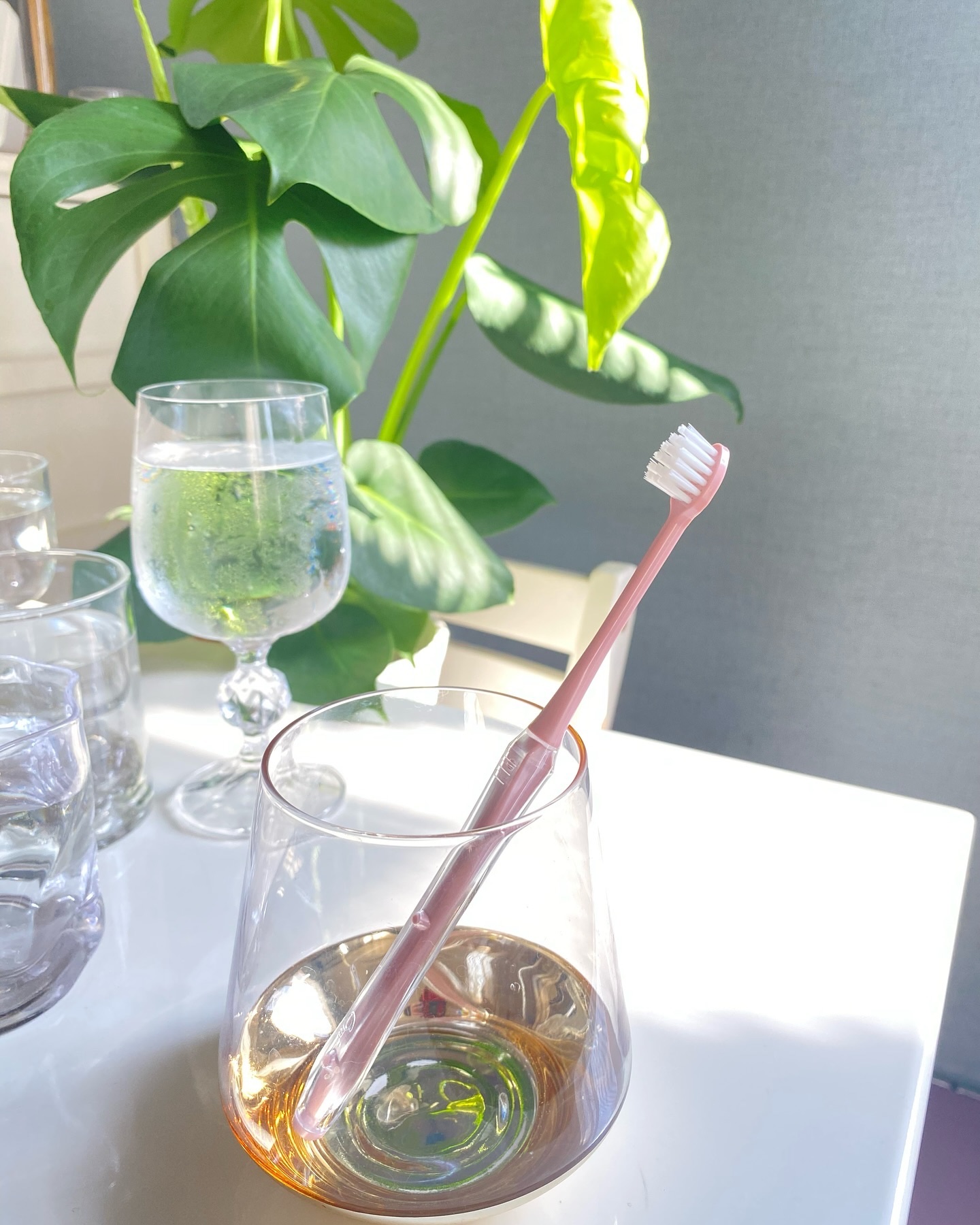 先端2.5mmのオーラツー史上最薄ヘッドで磨き残しを防いでくれる優秀歯ブラシ🪥 程よい密度の毛がなめらかにフィットして、ツルツルの磨き上がりに! トレンドのくすみカラーとクリアハンドルのデザインもお洒落で、使う度気分が上がります。