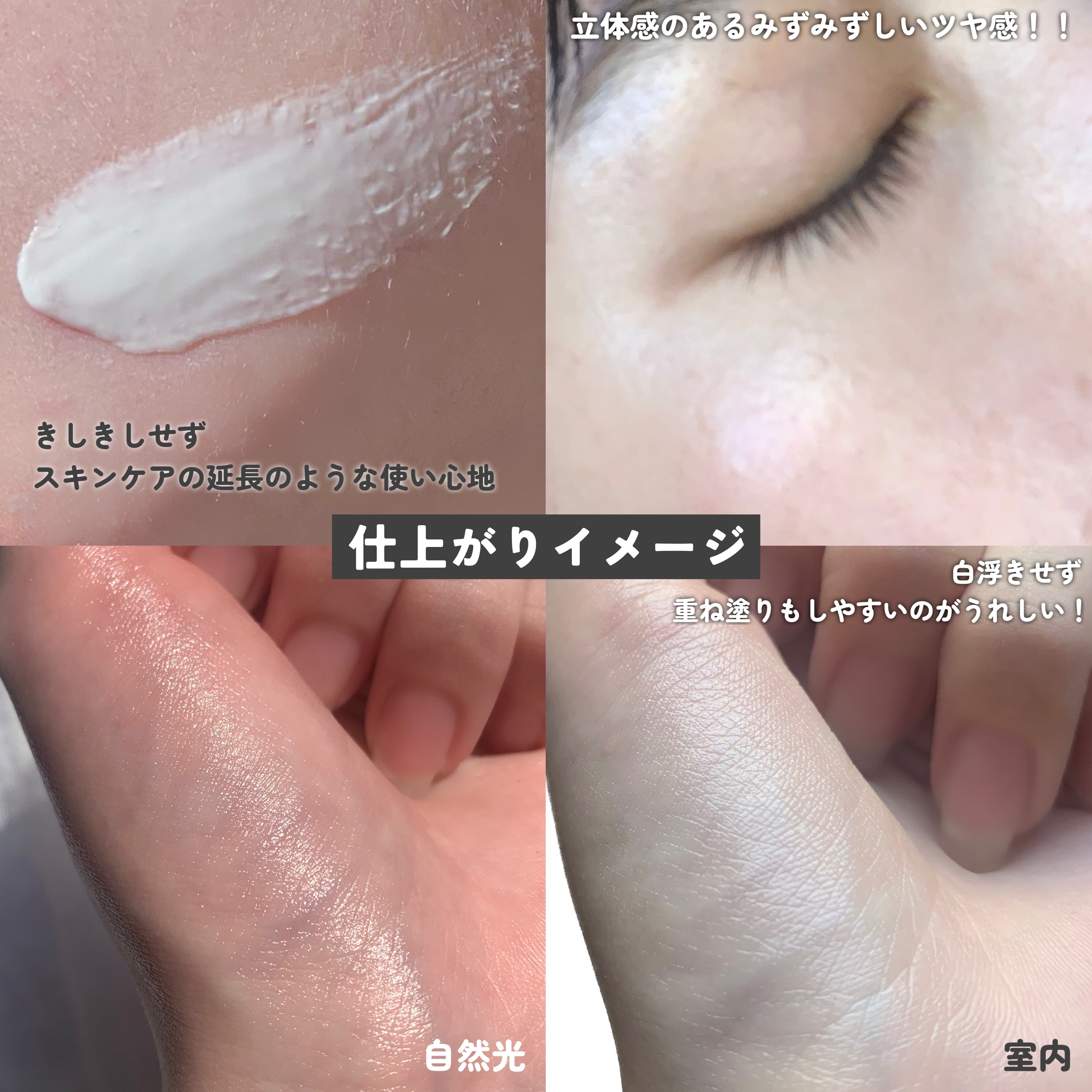伸びやがよくみずみずしい。保湿力がいいデイクリームにありがちなこっくりさやベタつきを感じないため、どの季節でも使いやすいアイテム。 化粧下地も兼ねているけど、トーンアップは感じないので、肌をフラットにしてファンデとの密着力を上げる感覚で使うのが良さそう。 今ではリピするくらい好きなアイテムです💭