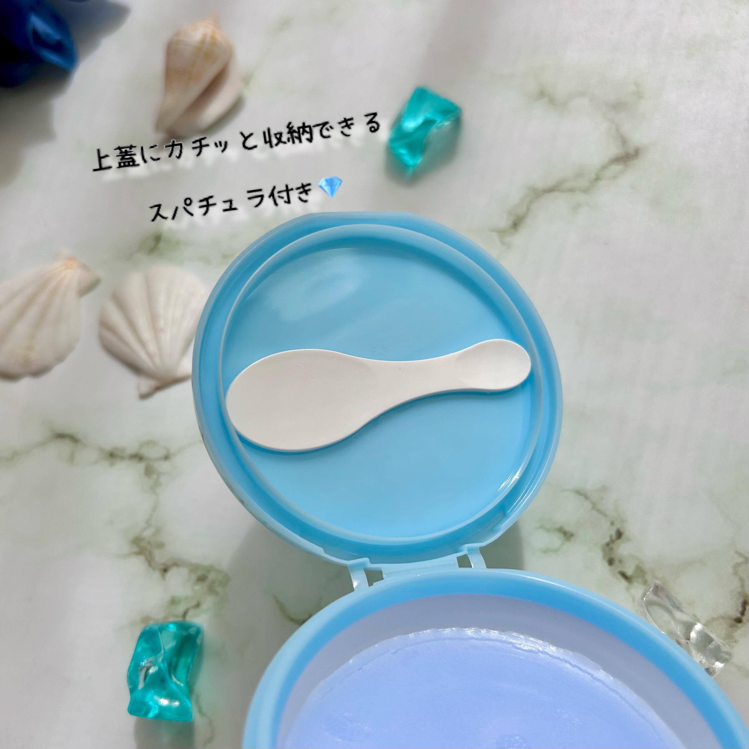 リニューアルしてW洗顔不要&スパチュラが落ちにくい新キャップになったよ! 薄い青紫のような色味で可愛らしいなと思ったよ 香りはフローラルハーブ! 肌に乗せるととろぉっと溶けていくのが気持ちよかった◎!!