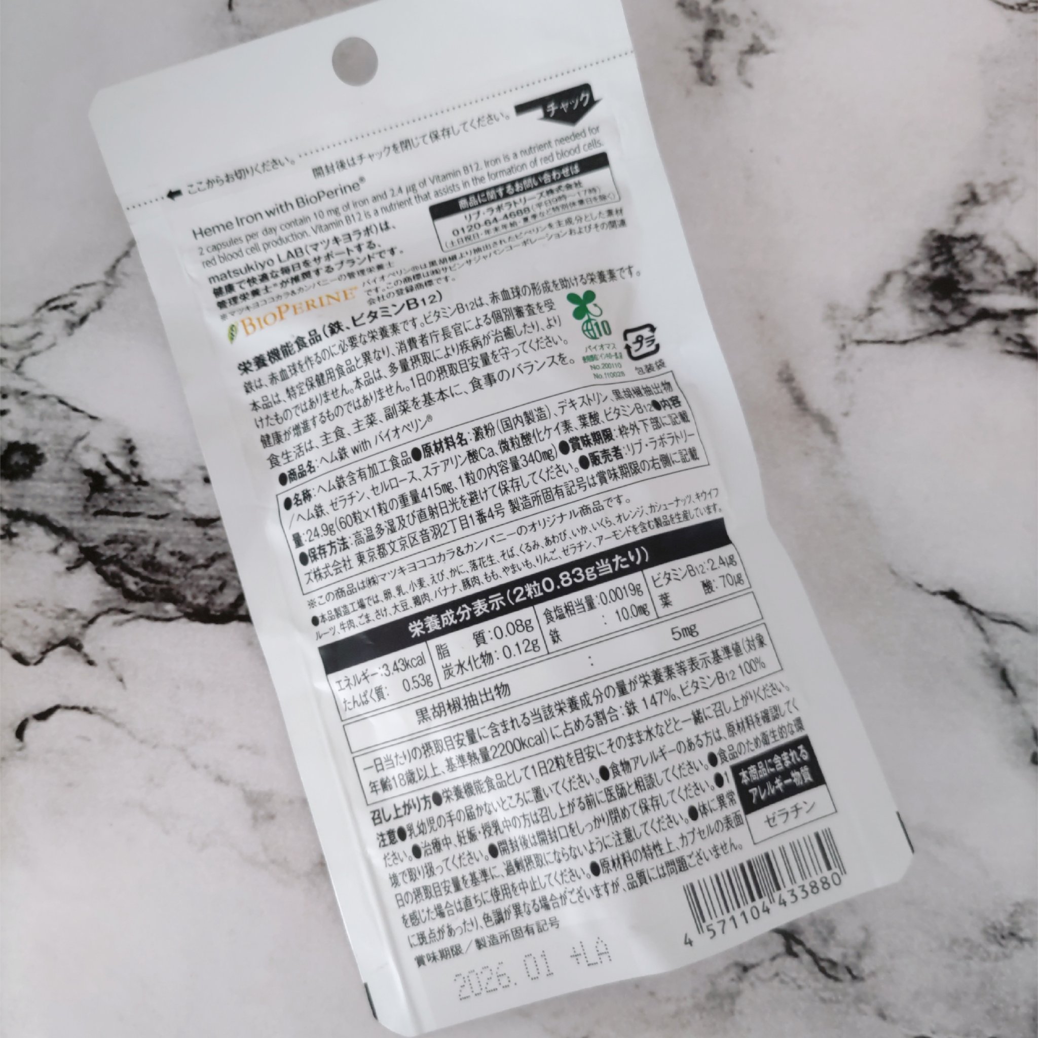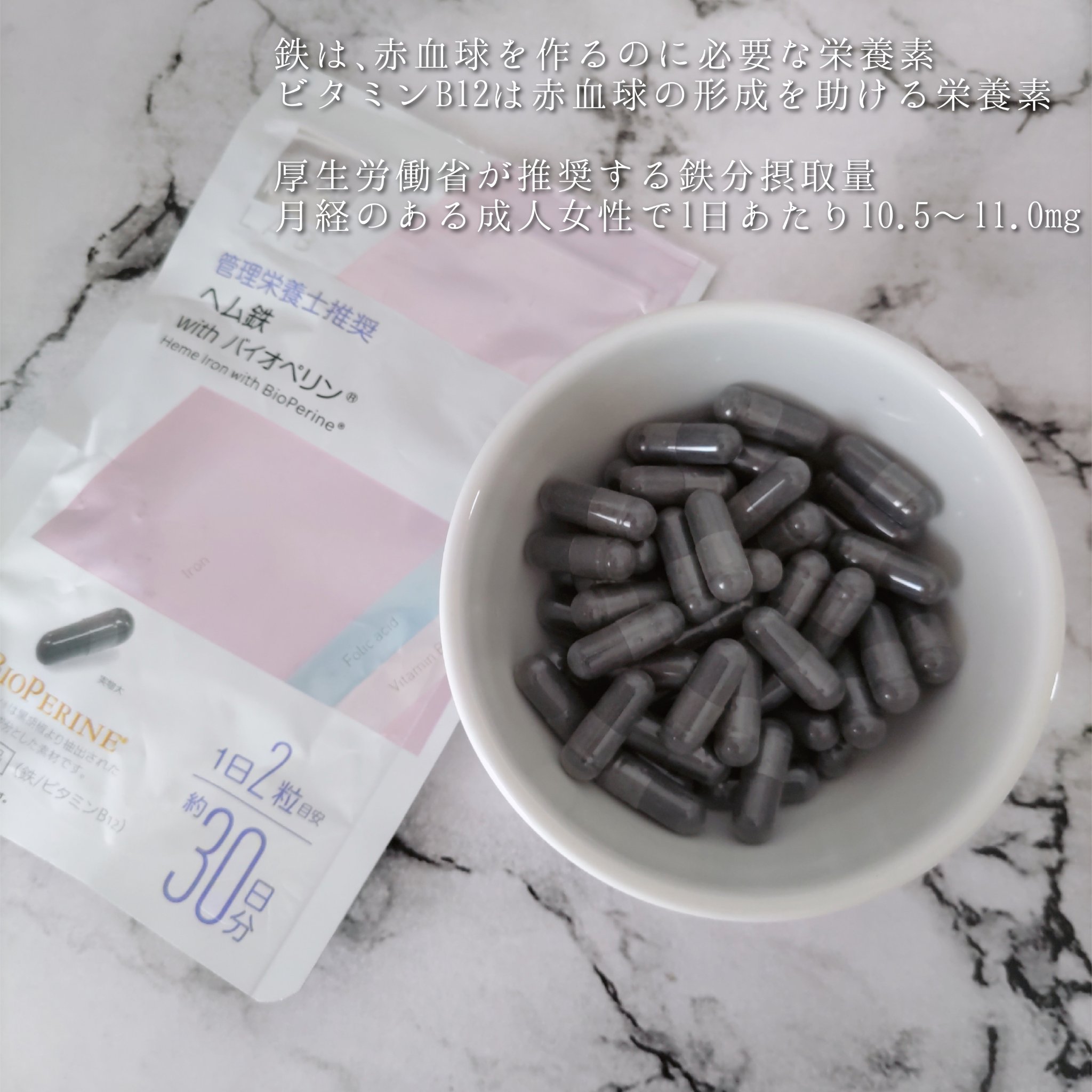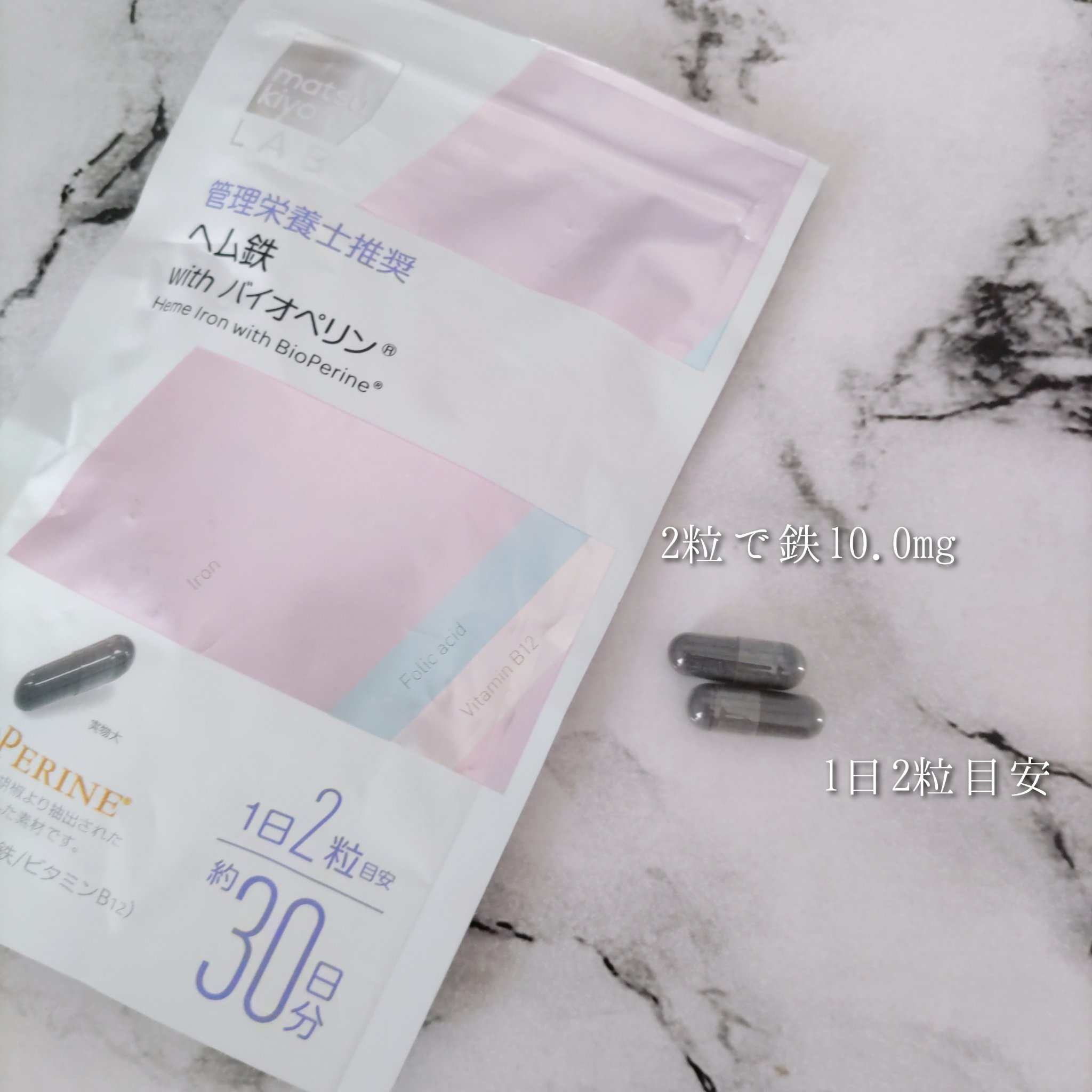 ❁.˚‧º‧‧º·˚.❁ 美容と健康維持に 不可欠な存在❁.˚‧º‧‧º·˚.❁matsukiyoヘム鉄withバイオペリンを買ったよ◡̈✩*˚₊‧ੈ✩おすすめポイントੈ✩‧₊˚*⋆1日2粒鉄・・・10.0mgビタミンB12・・・2...