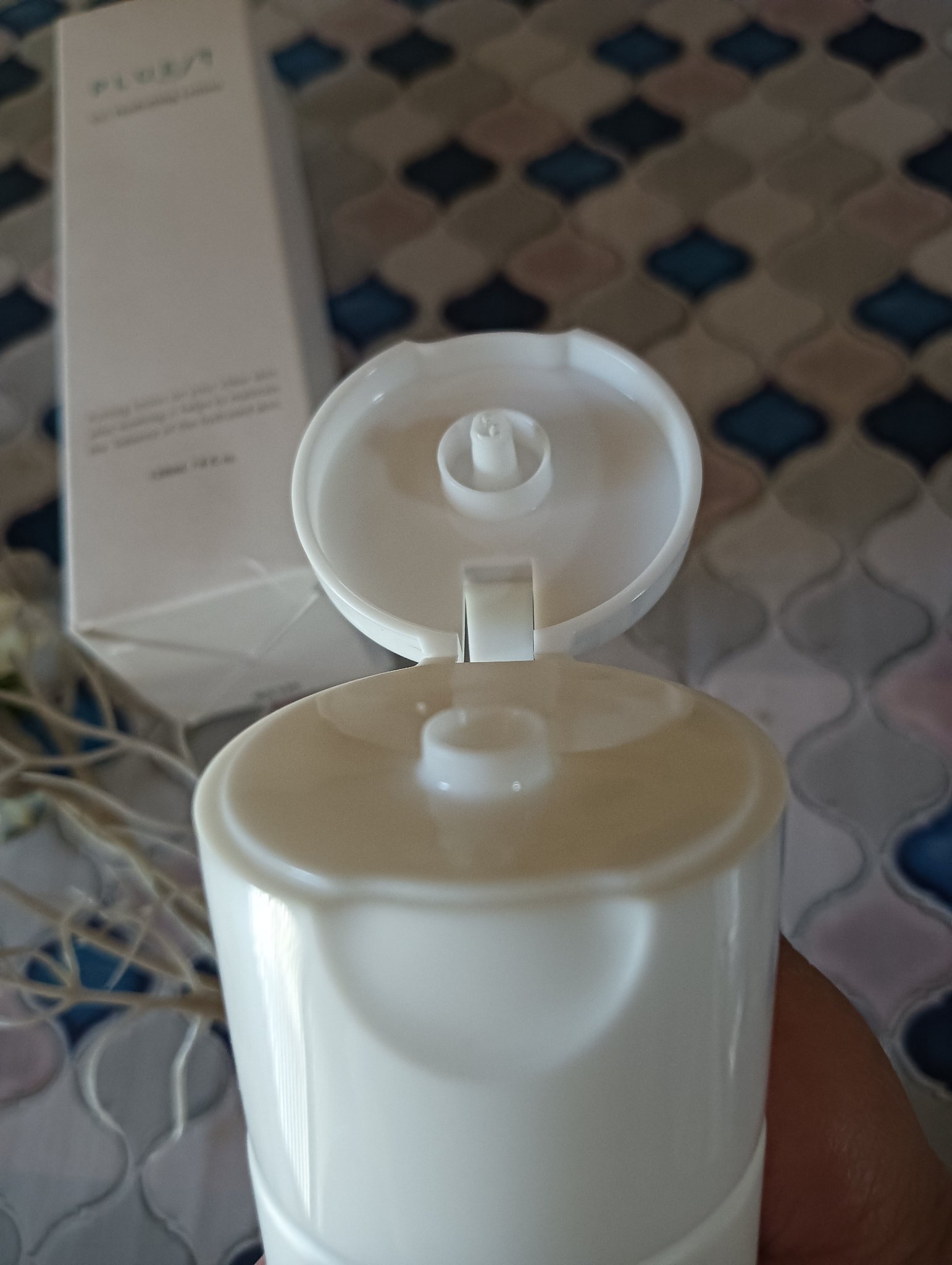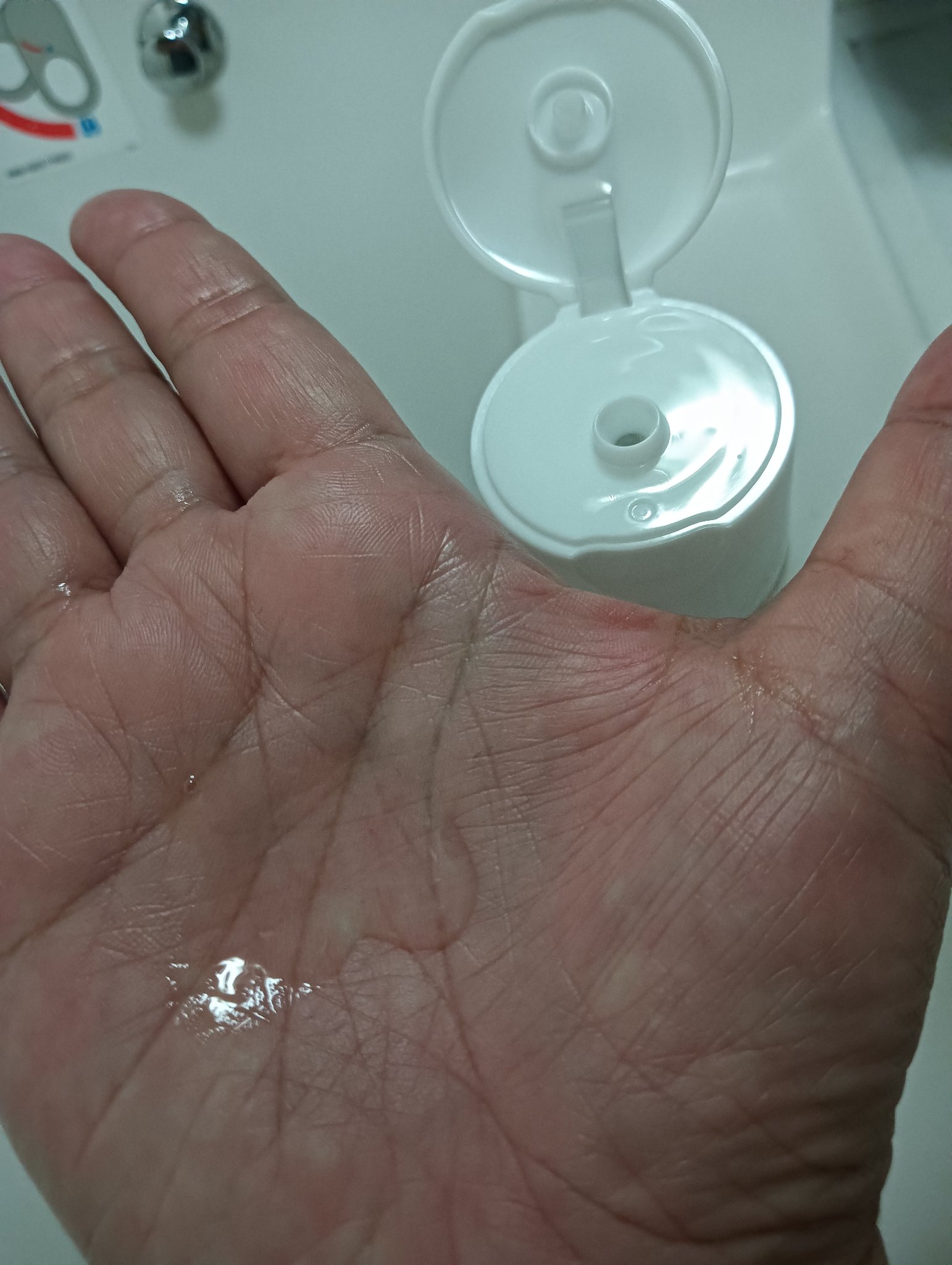透明感とみずみずしさが、感じられるデザインそのままのテクスチャーです。 500円硬貨大をコットンに含ませ、お肌に馴染ませると、ベタベタしない、本当にサラサラした【水】が感じられます。 肌に馴染み、お肌がぷるぷるとしたイメージで、ずっと自分の肌を触りたくなる良い感触(ㆁᴗㆁ✿) 紫外線を浴び、ピリつく肌にもエアコンで乾燥した肌にも、優しく潤うのがお気に入りっ。 テカリやすく、皮脂過多な夫も気に入って使っていますよ。