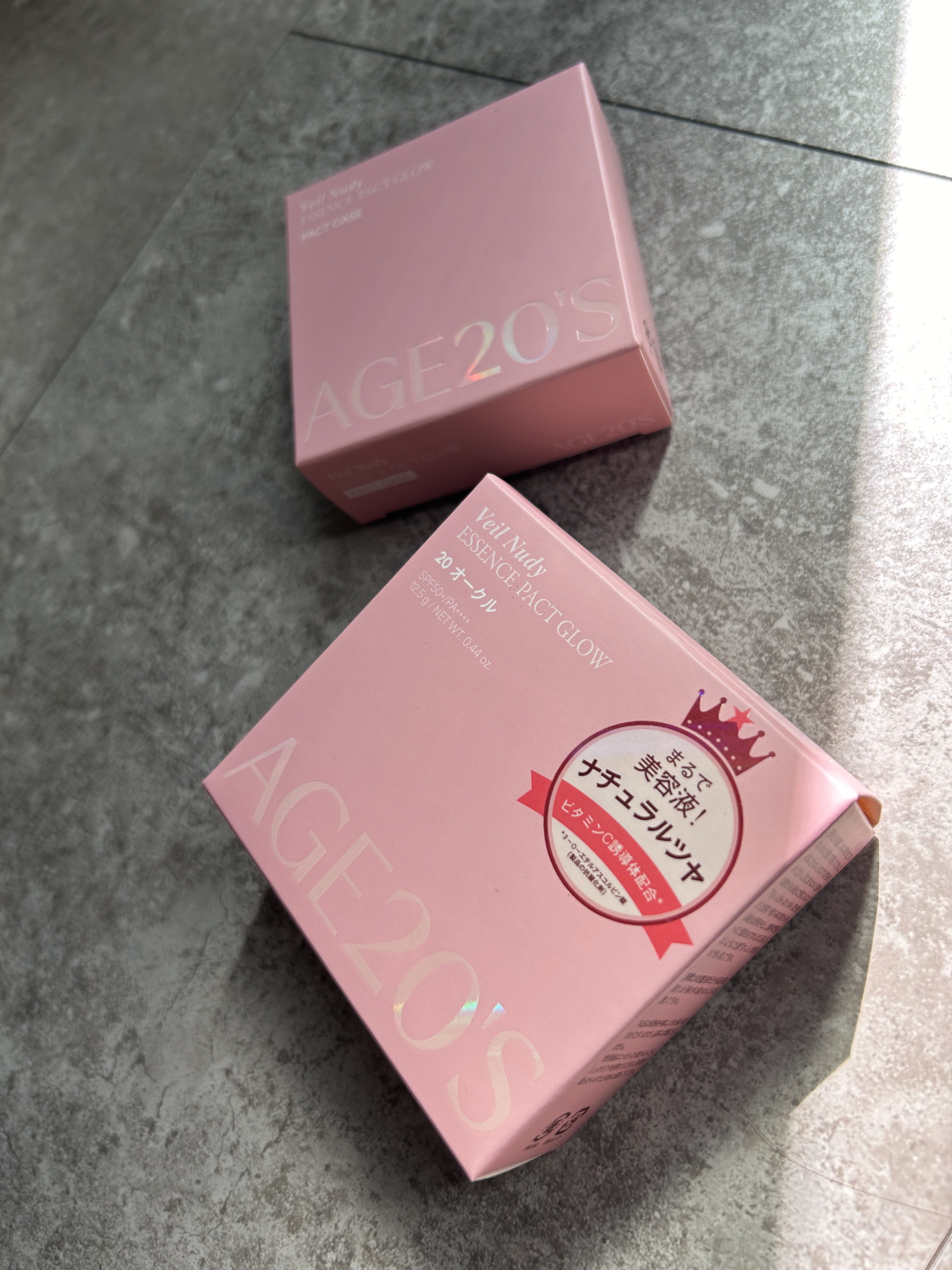 長時間乾燥知らず!ツヤ肌誕生❣️ AGE20’Sヴェールヌーディパクト カラーは10オークル♡ 使用感はしっとり潤い感 独自研究所で開発したコア技術「エッセンスポケット」を採用してるんだって 贅沢に美容液も配合しているからスキンケア感覚の美容液ファンデなの⭕️