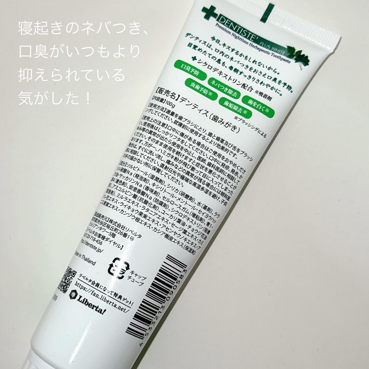 - <チューブタイプ 100g> ソルビトール(湿潤剤)、シリカ(研磨剤)、水(基剤)、ラウリル硫酸Na(発泡剤)、キシリトール・メントール・セイヨウハッカ油・サッカリンNa(香味剤)、青1・黄4( 着色剤)、安息香酸Na・メチルパラベン(防腐剤)、シクロデキストリン(吸着剤)、ア スコルビン酸(抗酸化剤)、ユーカリ葉油・チョウジ花油(賦香剤)、ミルラエキス・ラ タニアエキス・セージ葉エキス・カミツレ花エキス・ウイキョウ果実エキス・アセンヤク ノキエキス・アニス果実エキス・カンゾウ根エキス・カシア樹皮エキス(保湿剤) <チューブタイプ(レモングラス)100g> ソルビトール(湿潤剤)、水(基剤)、含水シリカ(研磨剤)、ラウリル硫酸Na(発泡剤)、キシリトール・セルロースガム・メントール・セイヨウハッカ油(香味剤)、安息酸Na(防腐剤)、シクロデキストリン(吸着剤)、サッカリンNa(香味剤)、アスコルビン酸(抗酸化剤)、レモングラス葉油・ユーカリ葉油・チョウジ花油(賦香剤)、レモン果実エキス・モツヤクジュ樹脂エキス・クラメリアトリアンドラ根エキス・セージエキス・ローマカミツレ花エキス・ウイキョウ種子エキス・アセンヤクノキ木エキス・アニス種子エキス・カンゾウ根エキス・カシア樹皮エキス・ムラサキバレンギクエキス(保湿剤)、黄4・青1・黄5(着色剤) <チューブタイプ 100g×2本セット> ソルビトール(湿潤剤)、シリカ(研磨剤)、水(基剤)、ラウリル硫酸Na(発泡剤)、キシリトール・メントール・セイヨウハッカ油・サッカリンNa(香味剤)、青1・黄4( 着色剤)、安息香酸Na・メチルパラベン(防腐剤)、シクロデキストリン(吸着剤)、ア スコルビン酸(抗酸化剤)、ユーカリ葉油・チョウジ花油(賦香剤)、ミルラエキス・ラ タニアエキス・セージ葉エキス・カミツレ花エキス・ウイキョウ果実エキス・アセンヤク ノキエキス・アニス果実エキス・カンゾウ根エキス・カシア樹皮エキス(保湿剤) <チューブタイプ ミニサイズ 5g> ソルビトール(湿潤剤)、シリカ(研磨剤)、水(基剤)、ラウリル硫酸Na(発泡剤)、キシリトール・メントール・セイヨウハッカ油・サッカリンNa(香味剤)、セルロースガム(増粘剤)、青1・黄4(着色剤)、安息香酸Na(防腐剤)、シクロデキストリン(吸着剤)、アスコルビン酸(抗酸化剤)、ユーカリ葉油・チョウジ花油(賦香剤)、ミルラエキス・ラタニアエキス・セージ葉エキス・カミツレ花エキス・ウイキョウ果実エキス・アセンヤクノキエキス・アニス果実エキス・カンゾウ根エキス・カシア樹皮エキス(保湿剤) <ポンプタイプ 120g> ソルビトール(湿潤剤)、シリカ(研磨剤)、水(基剤)、ラウリル硫酸Na(発泡剤)、キシリトール・メントール・セイヨウハッカ油・サッカリンNa(香味剤)、青1・黄4( 着色剤)、安息香酸Na・メチルパラベン(防腐剤)、シクロデキストリン(吸着剤)、ア スコルビン酸(抗酸化剤)、ユーカリ葉油・チョウジ花油(賦香剤)、ミルラエキス・ラ タニアエキス・セージ葉エキス・カミツレ花エキス・ウイキョウ果実エキス・アセンヤク ノキエキス・アニス果実エキス・カンゾウ根エキス・カシア樹皮エキス(保湿剤) <チューブタイプ(ピーチ&ミント)100g> ソルビトール(湿潤剤)、含水シリカ(研磨剤)、水(基剤)、プロパンジオール(保湿剤)、ラウリル硫酸Na(発泡剤)、キシリトール(香味剤)、セルロースガム(粘結剤)、香料(香味剤)、メントール(清涼剤)、セイヨウハッカ油(香味剤)、安息香酸Na(防腐剤)、シクロデキストリン(吸着剤)、サッカリンNa(香味剤)、アスコルビン酸(製品の抗酸化剤)、モモ果実エキス(保湿剤)、ユーカリ葉油(香味剤)、チョウジ花油(香味剤)、モツヤクジュ樹脂エキス(保湿剤)、クラメリアトリアンドラ根エキス(保湿剤)、セージ葉エキス(保湿剤)、ローマカミツレ花エキス(保湿剤)、ウイキョウ果実エキス(保湿剤)、アセンヤクノキ木エキス(保湿剤)、アニス果実エキス(保湿剤)、カンゾウ根エキス(保湿剤)、カシア樹皮エキス(保湿剤)、エチナシ根エキス(保湿剤)、青1(着色剤)、黄4(着色剤)