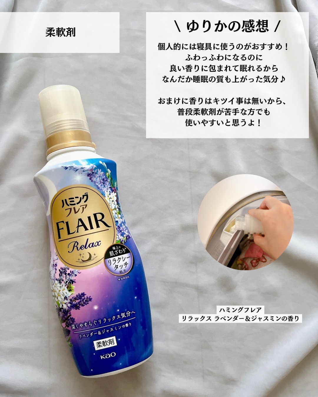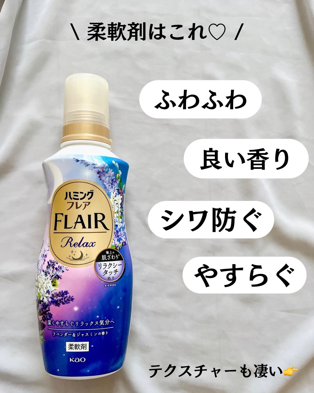 \リラックス気分の柔軟剤/☑︎ハミングフレアリラックスラベンダー&ジャスミンの香り最近お気に入りの柔軟剤をレビューするよ🧺深くやすらぐリラックス気分の香りと、極上の肌ざわり*1の「リラクシータッチ処方」💜ナチュラルなラベンダーとあたたかみのあ...