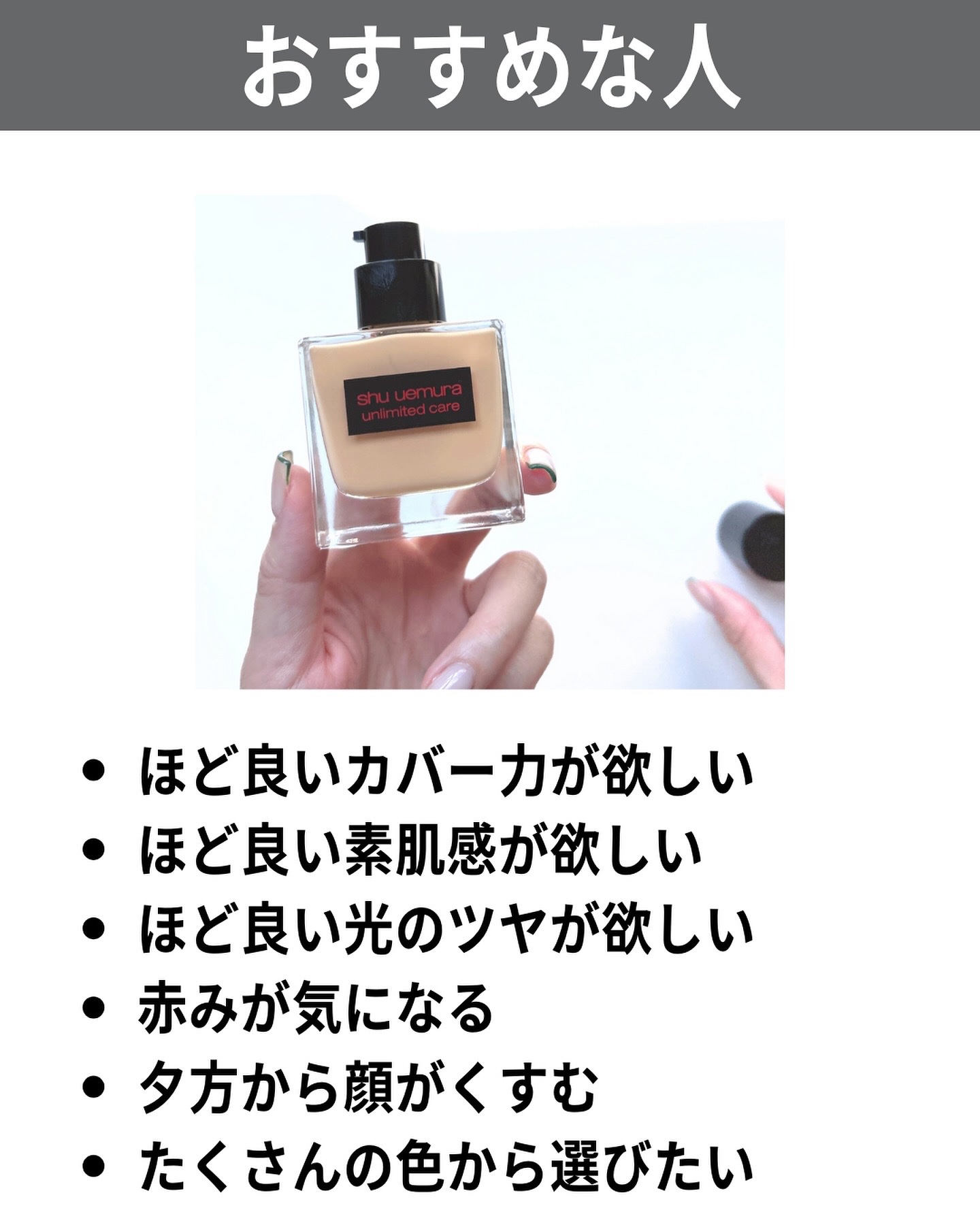 商品詳細情報shu uemura アンリミテッド ケア ツヤ セラム ファンデーション