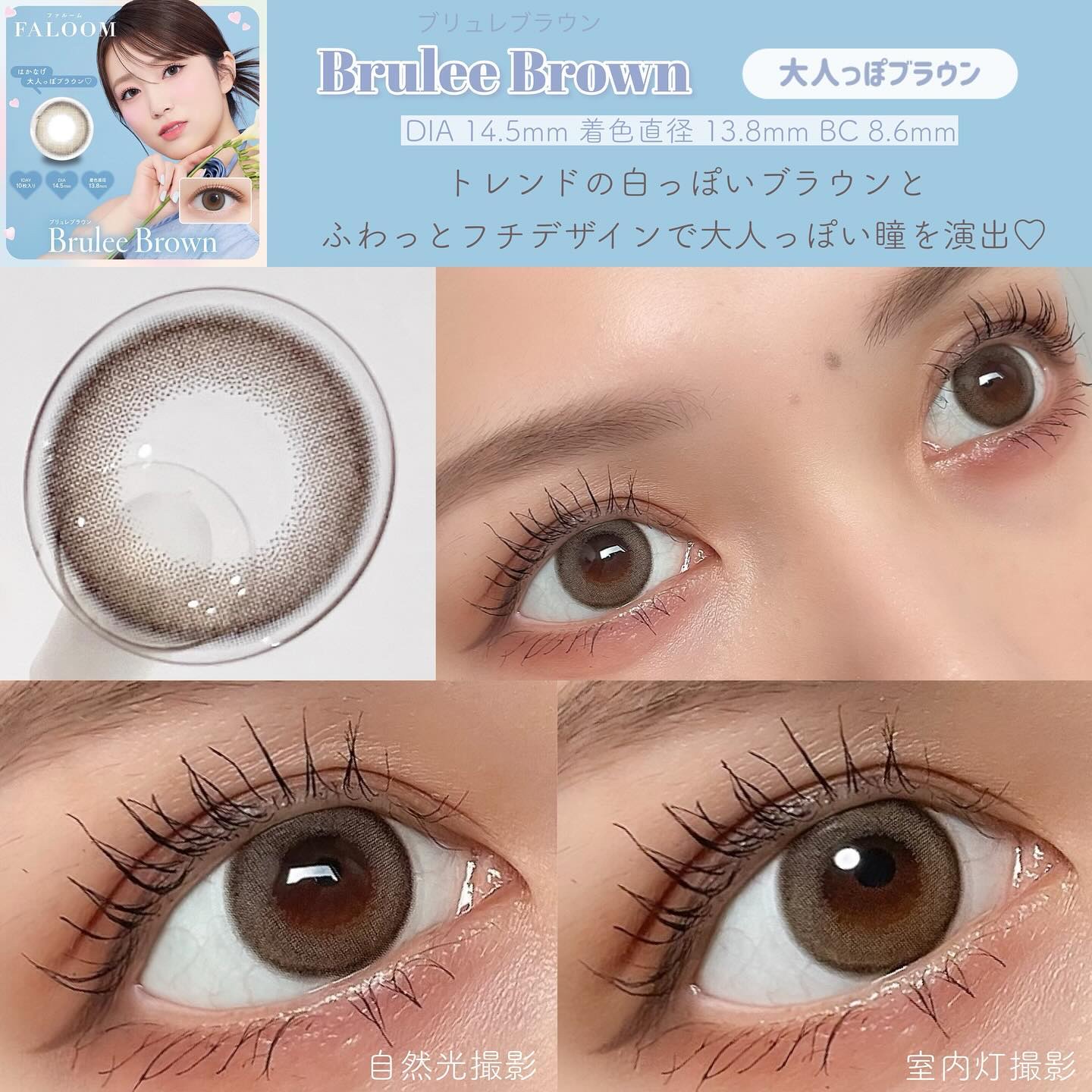 矢吹奈子さんプロデュース&イメージモデルのカラコンブランドさん『FALOOM』 裸眼風だけど裸眼より確実に盛れちゃう😍 シーン問わず使いやすいカラコン! まろやかベージュブラウンとぼかしフチで馴染みがよくくりっとした瞳に❤︎