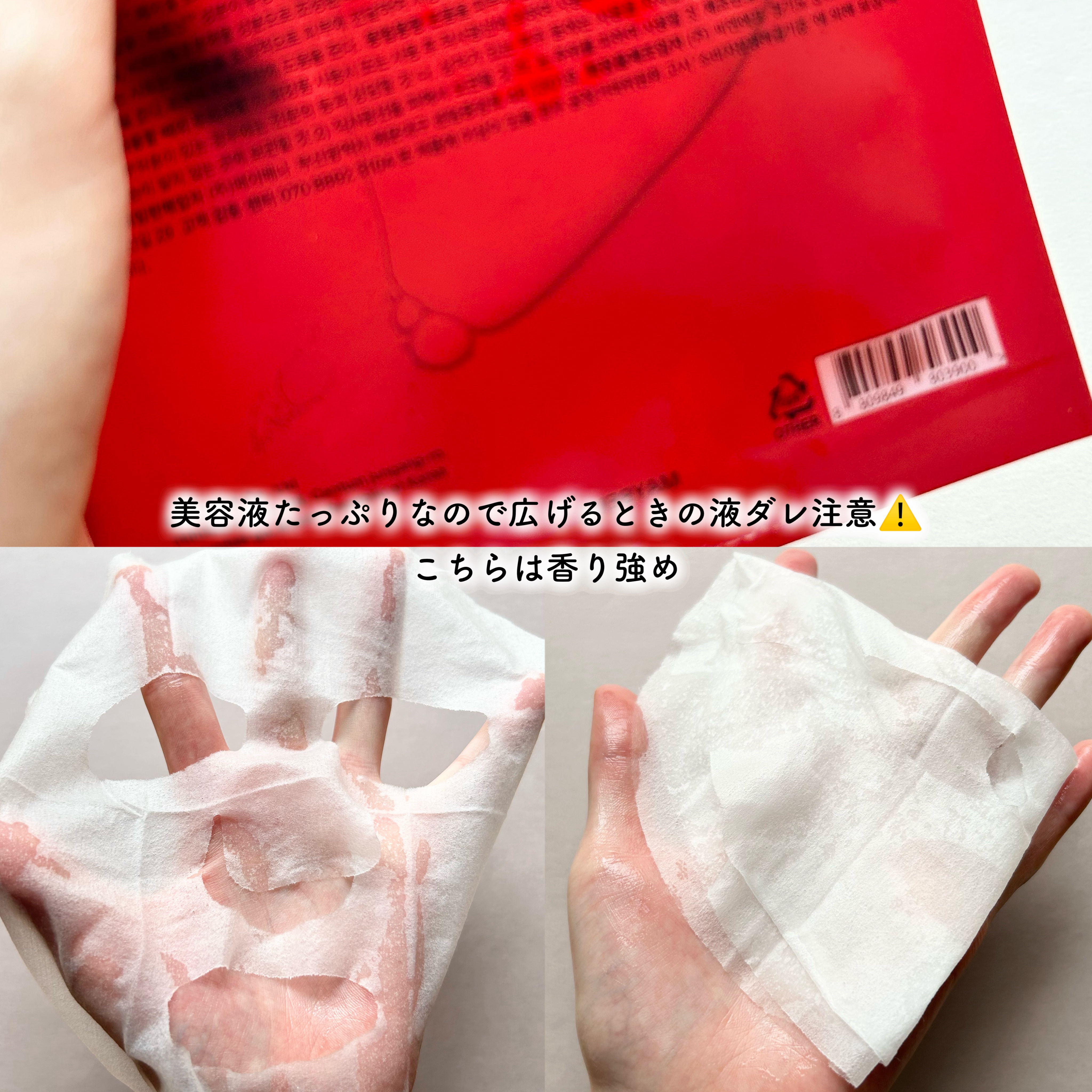| シートは薄めですがたっぷりの美容液を含んでいるので水分感溢れるテクスチャーでお肌にぴたっと密着しやすく感じました🙌 | 詳細を見る |