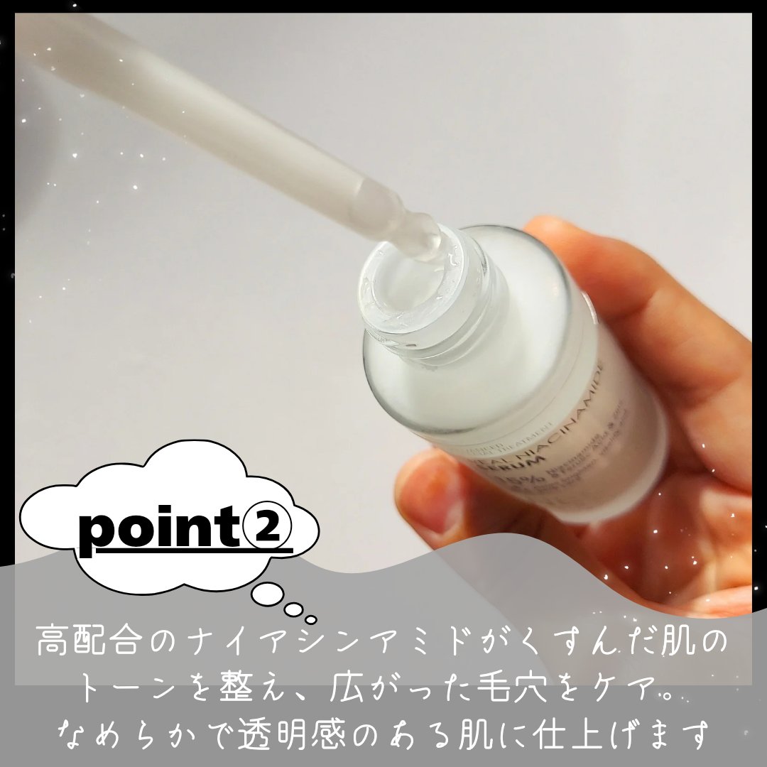 トーンアップ効果のある、ナイアシンアミド成分を15%配合したトーンアップケアセラムです。 とろーりとしたミルク色の美容液でした。スポイトがとっても柔らかくて驚いちゃった♡ もちもちとした仕上がりがとてもよかったです😊