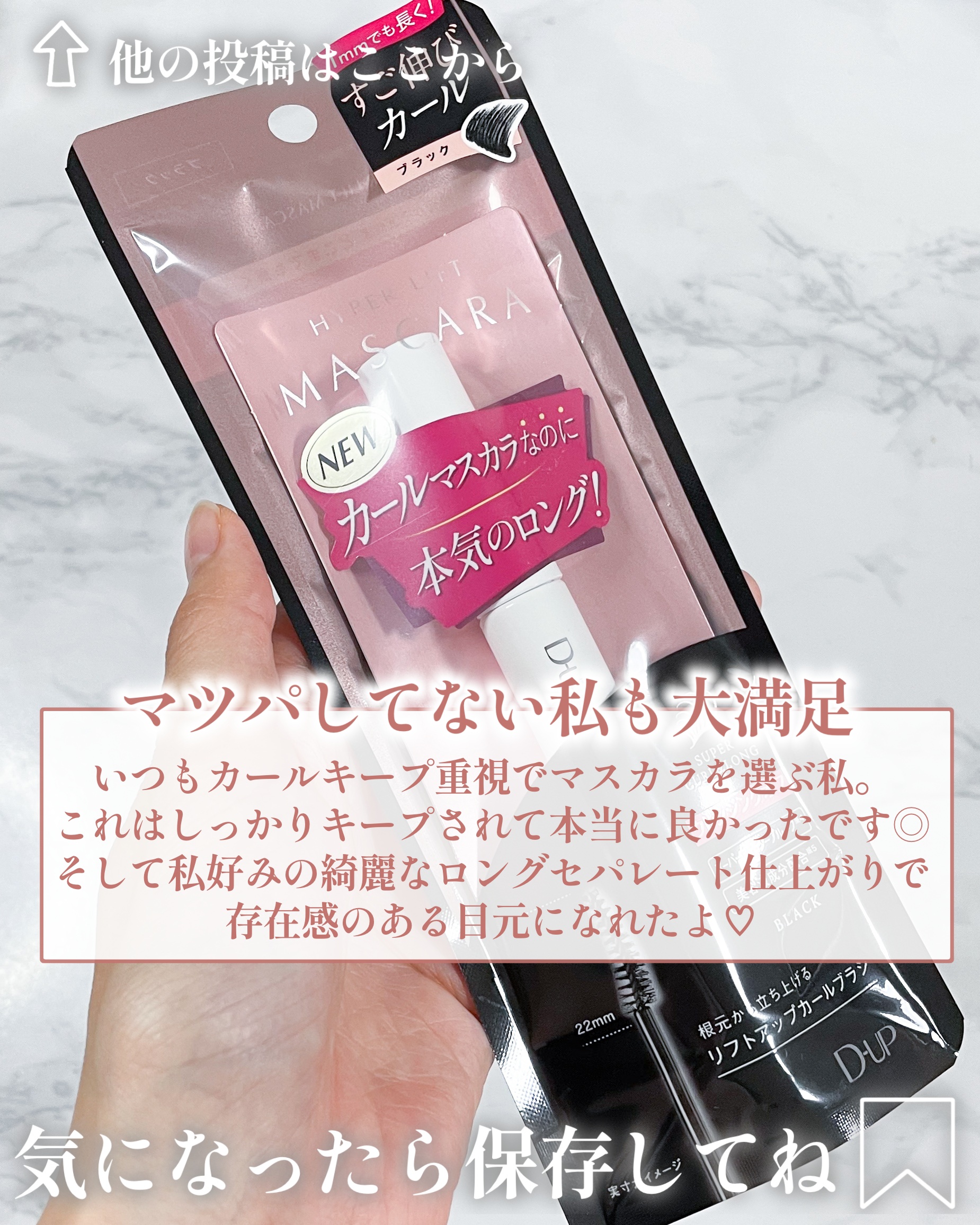D-UP ハイパーリフトマスカラ どんなまつ毛もしっかりキャッチしてくれる“先細り”のコンパクトブラシ◎ 目にフィットするカーブでしっかりまつ毛をとかせるからダマにもなりにくい◎ ウォータープルーフで塗りたてを長時間キープ◎ セパレートされた繊細な仕上がりでロングなまつ毛を作るのが好きな人は是非チェックしてみてね☑️