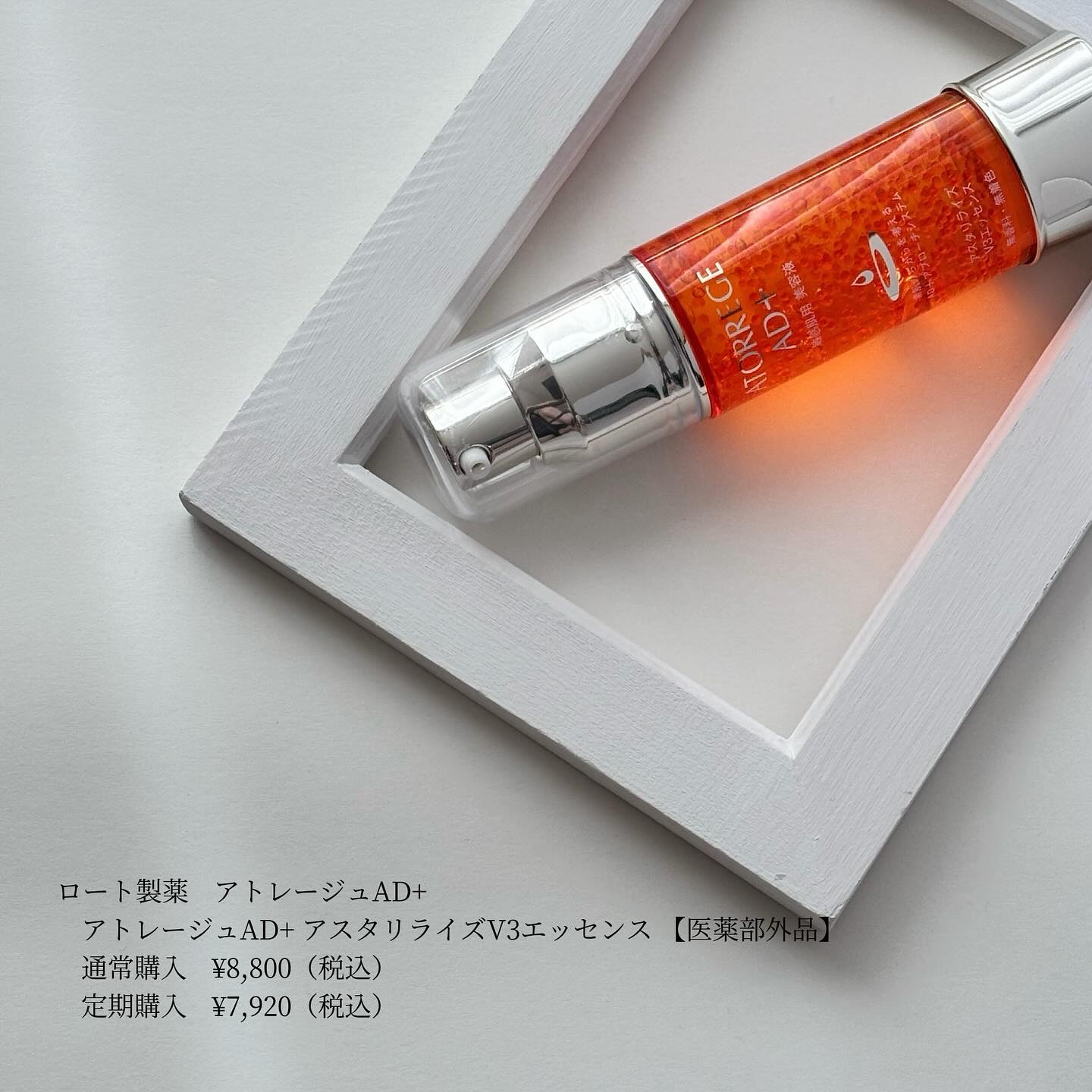 ♡アトレージュAD+アスタリライズV3エッセンス販売価格8800円30mlロート製薬さまからいただきました敏感肌×エイジングケア2つの悩みに応える美容液でロート製薬さまのブランド、アトレージュです特徴的なオレンジ色の粒々は「V3カプセル」ビタ...