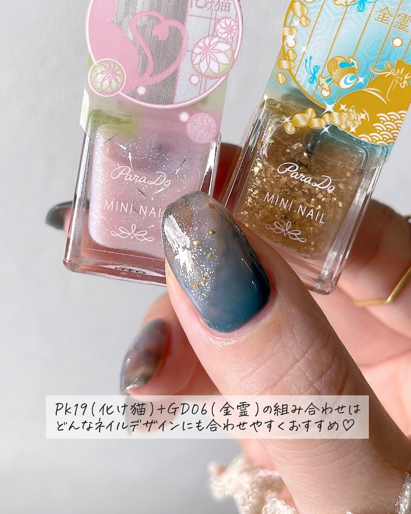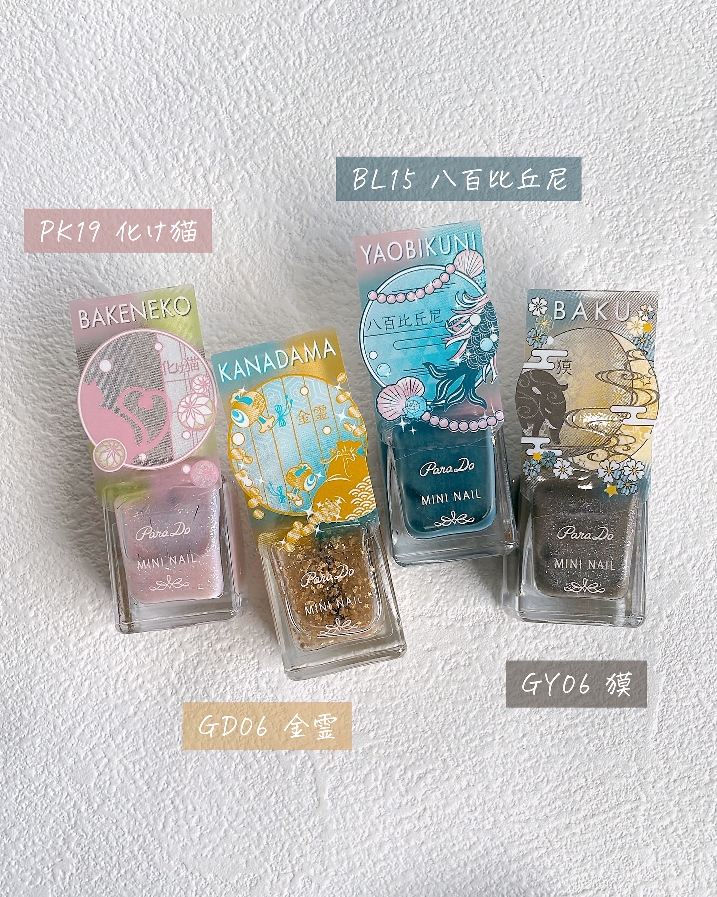パラドゥミニネイル24年秋冬新色 AYAKASHI~妖~をいただきました! 日本古来からご利益があるといわれている妖たちにインスパイアされたカラーが勢揃い! 385円という安さ! ワンシーズンで使い切れるミニサイズなので飽きることなく堪能できます🍁✨ ネイルの色と併せて妖がもたらすご利益も楽しむことができます😌