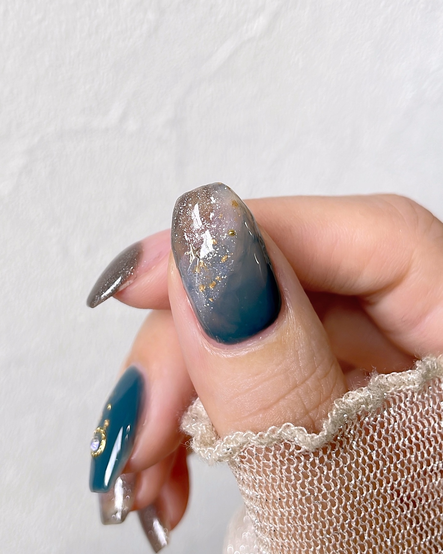 nailholicBE820(親指人差し指小指)nailholicBE302(中指)nailholicGD061(薬指)→薬指にのみユニコーンパウダーを重ねています🦄BE820とBE320は肌馴染みのいいピンクベージュでこの2色を組み合わせる...
