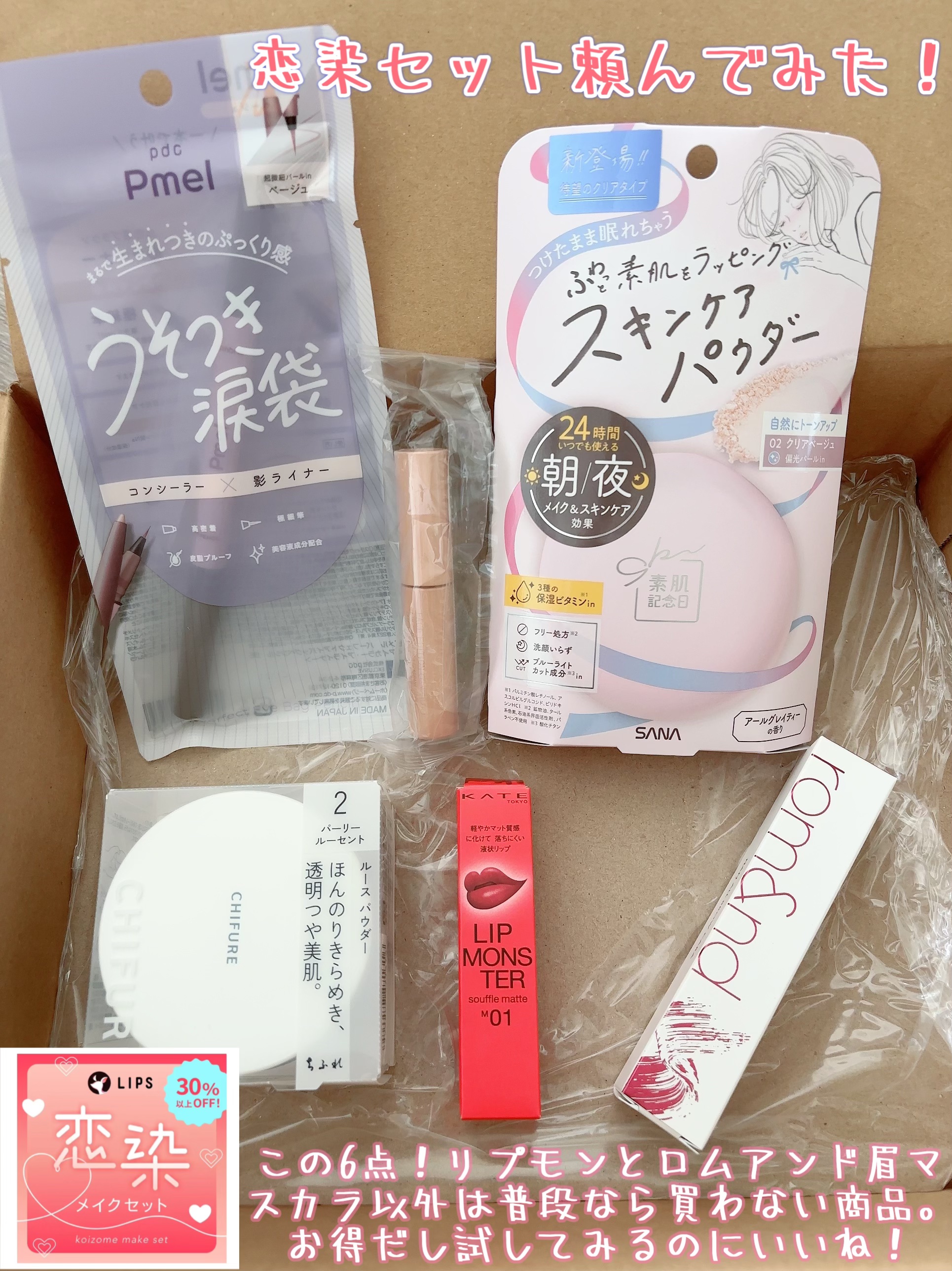 思わず恋したくなるようなコスメをLIPSがセレクトしたセットということでわくわくしながら開封してみると、たっぷり6アイテムも入っていました❤️ ルースパウダーは口コミ良さそうだし、リプモンスフレマットは気になってたカラーなので今回のメイクセットも大当たりです✨ あまりアイライナーを使わないこともあり自分で買うことはほとんどないので、こういう機会にゲットできるのは実はかなりありがたい!