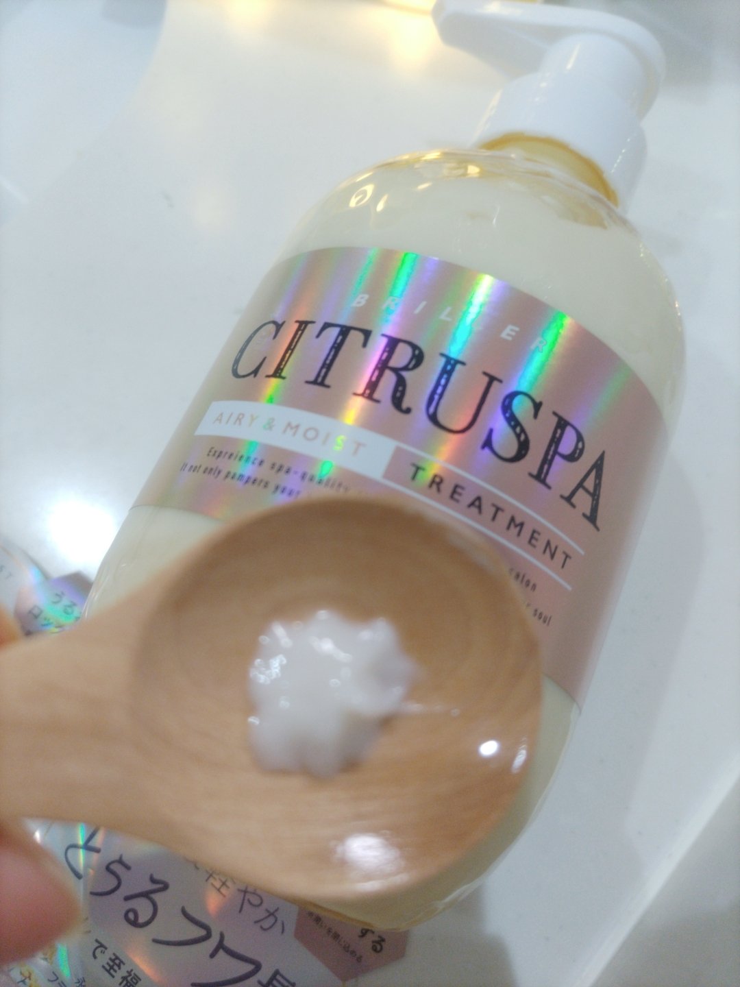 至福のリゾートスパ体験が自宅で叶う 新しいCITRUSPA✨✨ 爽やかなシトラスティーの香りがとても癒される♪ シャンプーは泡立ちが良く、コンディショナーはかなりしっとり!! 乾かした後は、かなり指通りがサラサラして綺麗に仕上がったよ🤩